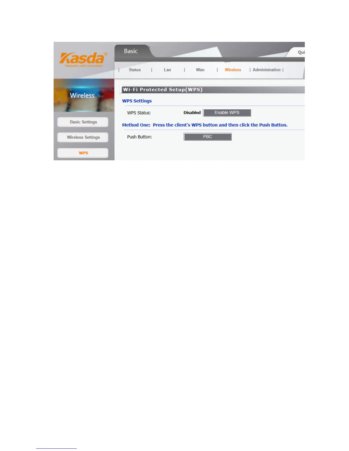 • WPS Status – Enable or disable the WPS function here.