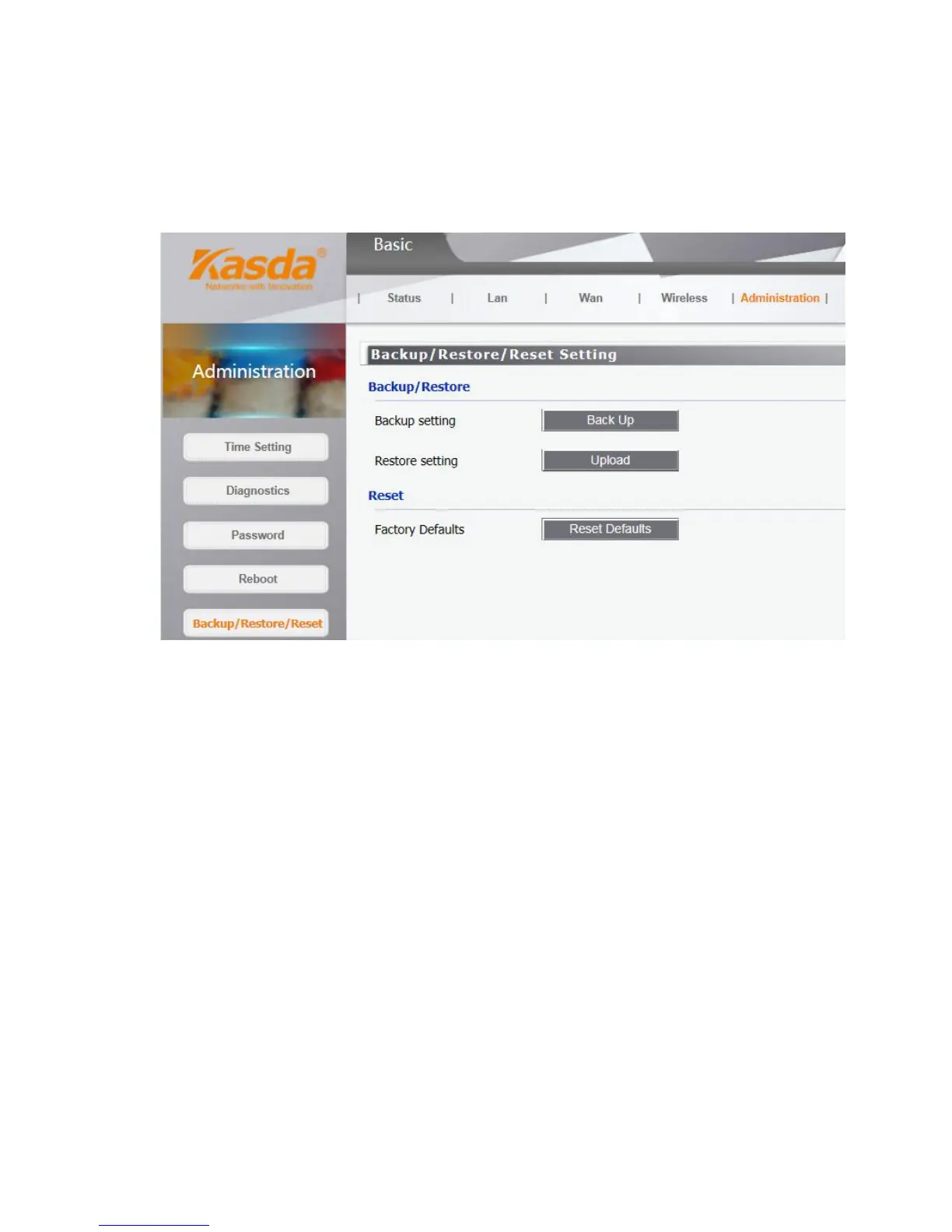 Click the Backup button to save all configuration settings to your local computer as a