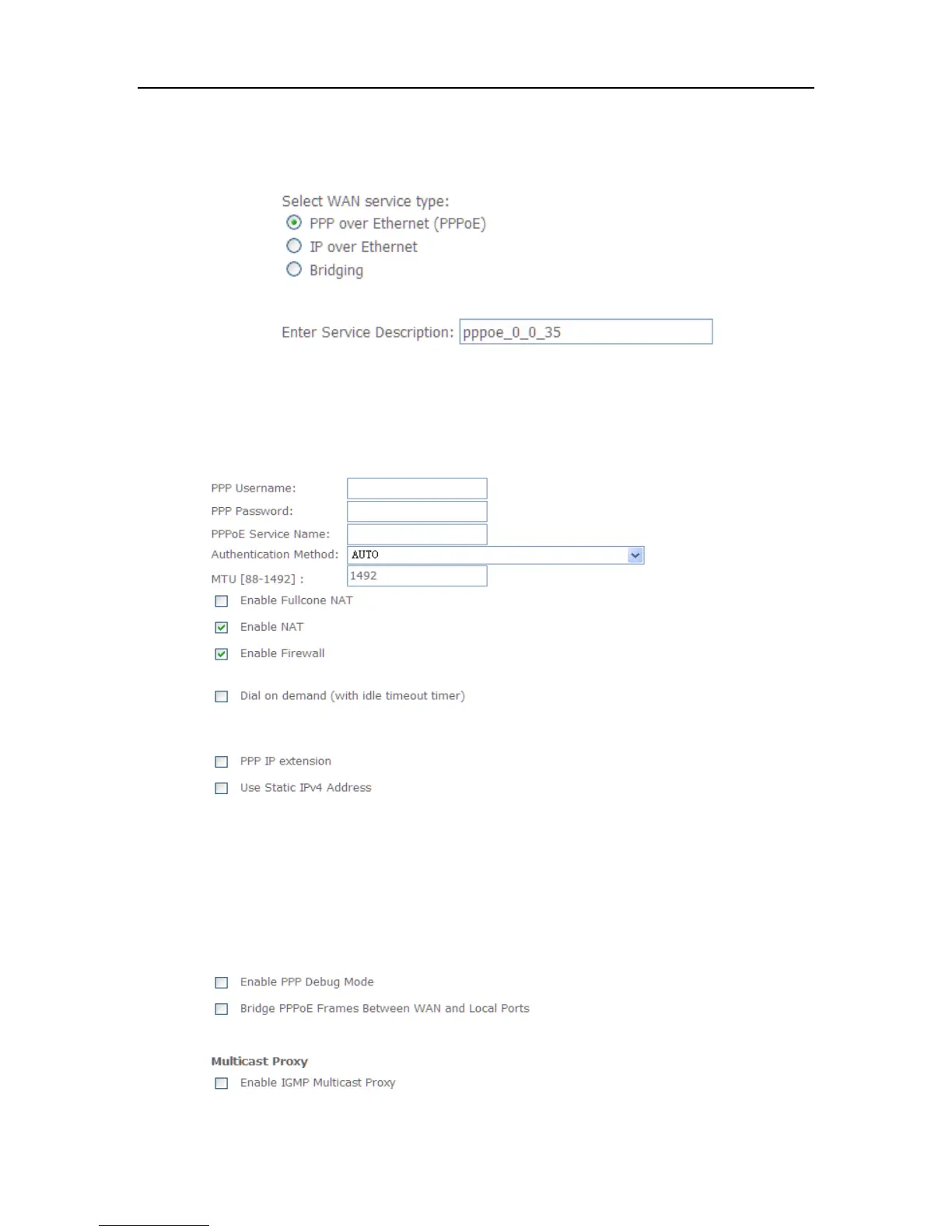 5. Choose WAN service type, just choose PPPoE for example here. You can enter