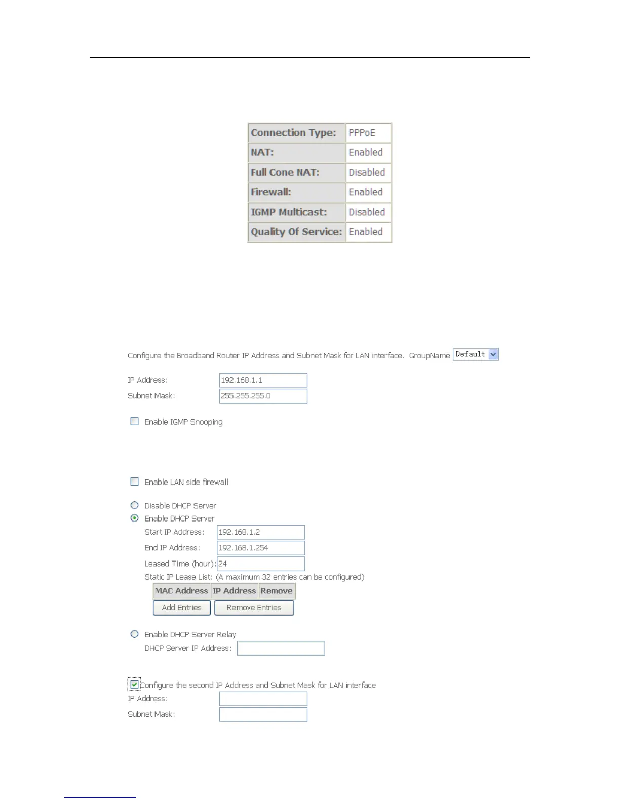 From LAN, Configure the DSL Router’s IP Address and Subnet Mask for LAN
