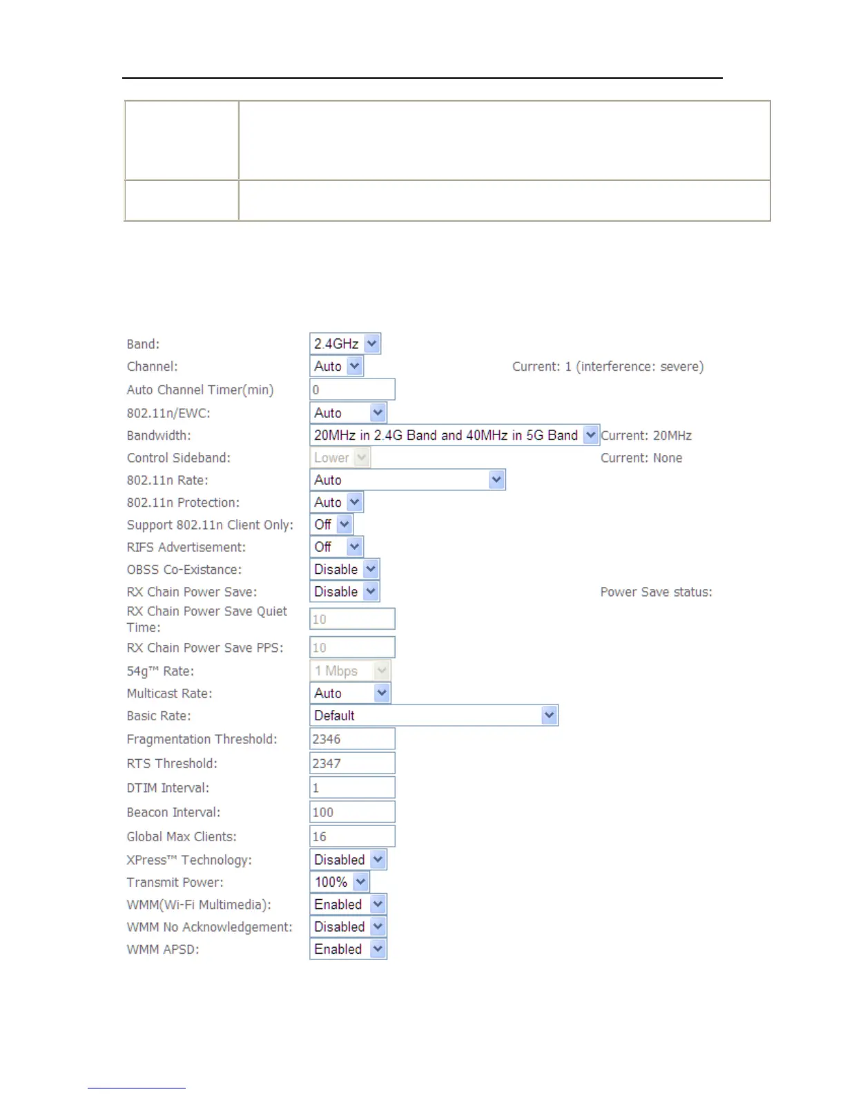 This page is where user specifies a number of advanced settings for wireless