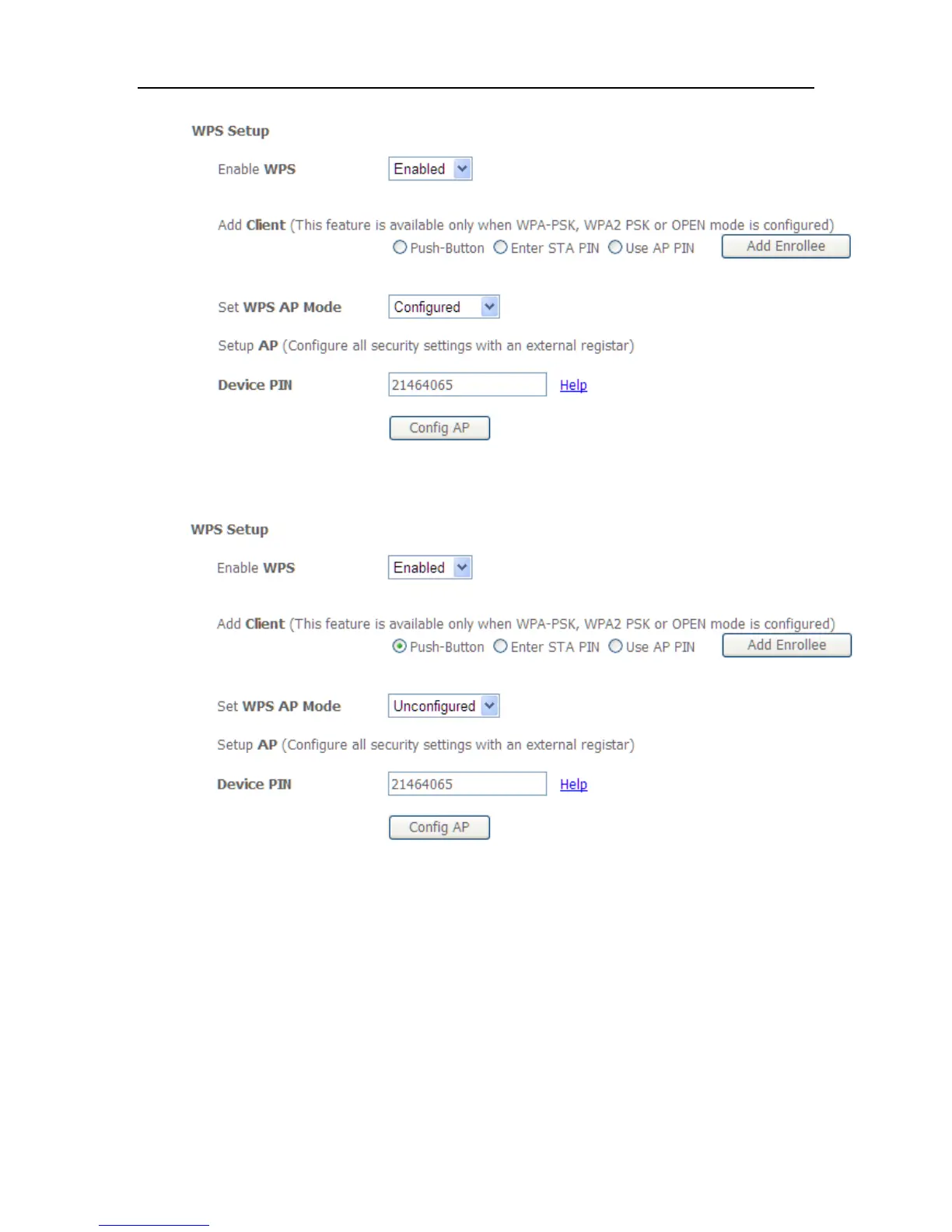 4.Set WPS AP mode as Unconfigured and click Config AP.