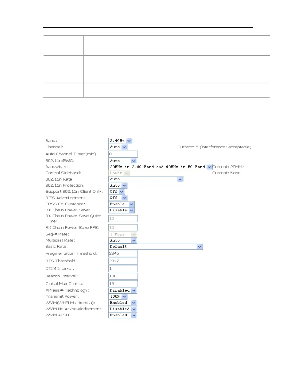 This page is where user specifies a number of advanced settings for wireless