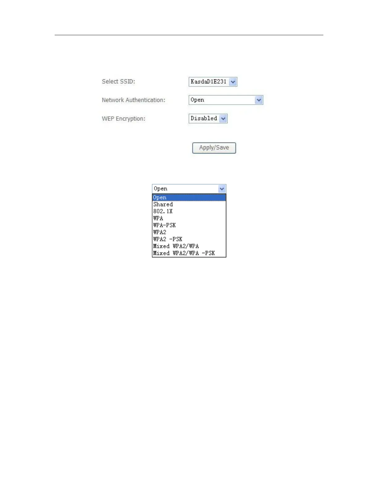 account list. User can optionally enable WEP encryption with this option.