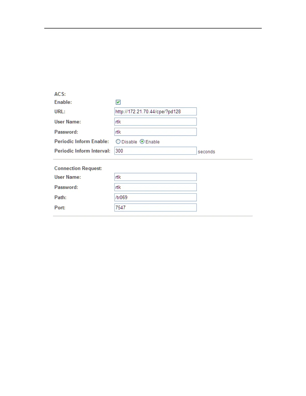 User Name: Username used to authenticate an ACS making a Connection Request to