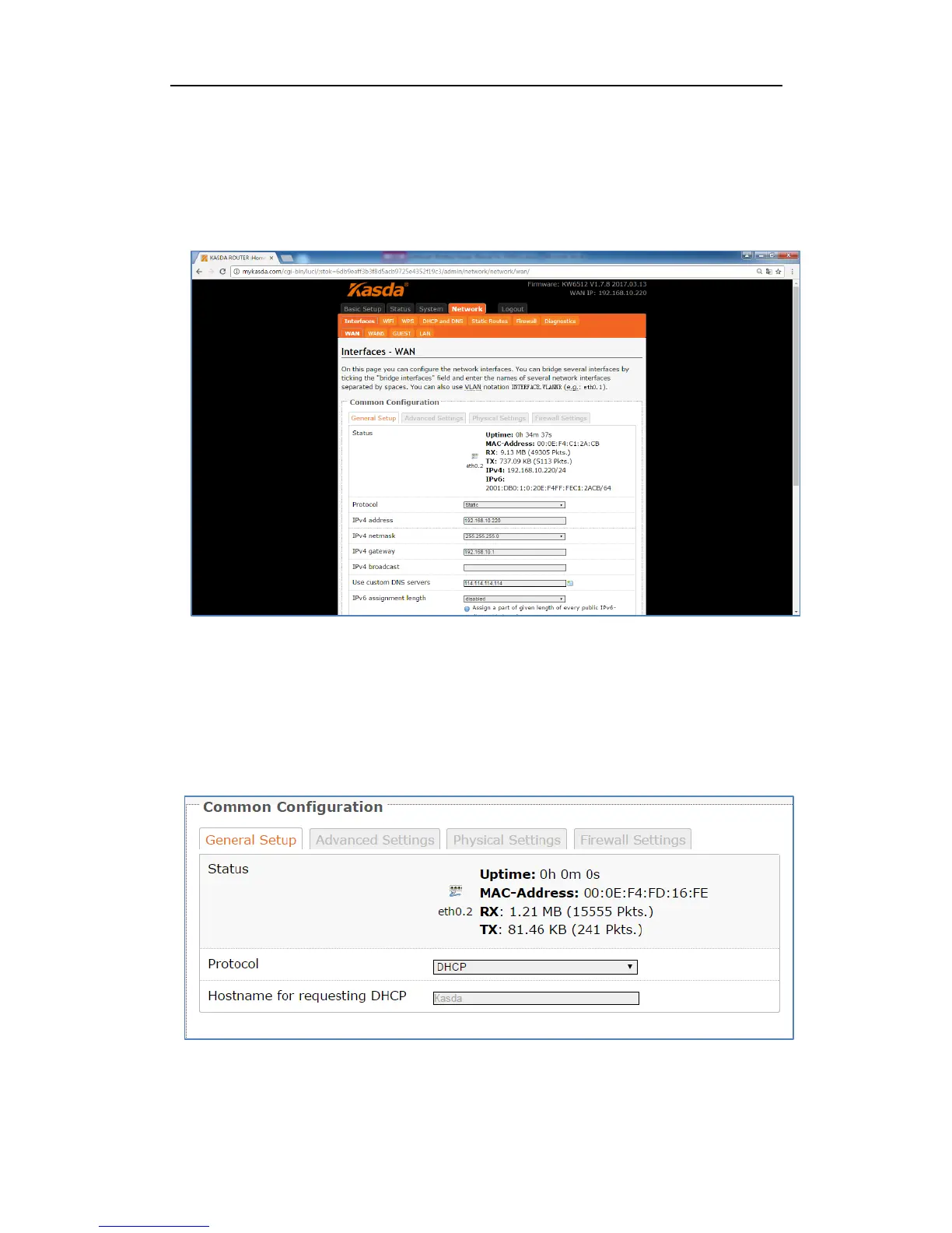General Setup, Advanced Settings, Physical Settings and Firewall Settings.