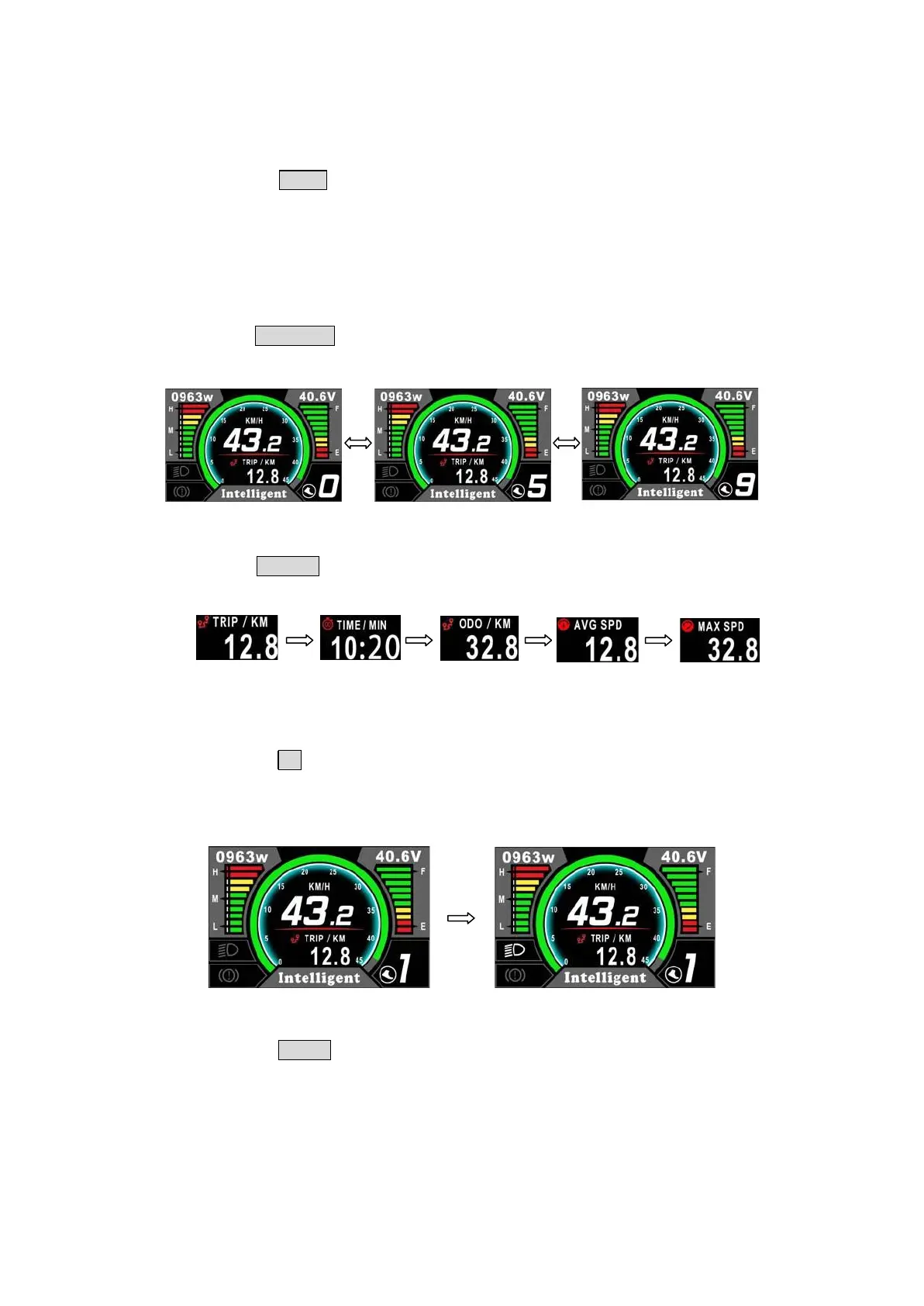 Short press POWER button can change the speed and mileage mode, TRIP→TIME