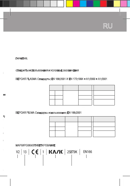 ВЕРСИЯ PIUMA Стандарты использования: EN 166:2001