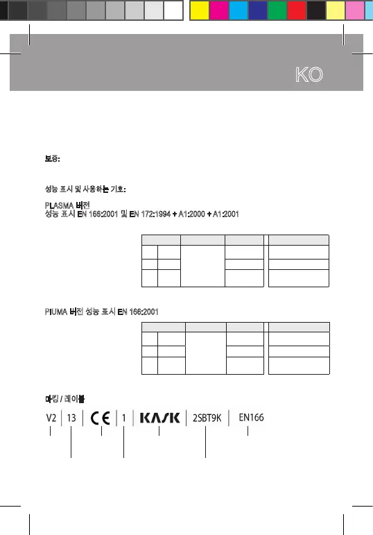 경고: PLASMA 버전의 보호 장비는 고온의 고속 비산 물체에 대한 보호 기능을 제공하며 타각 문자