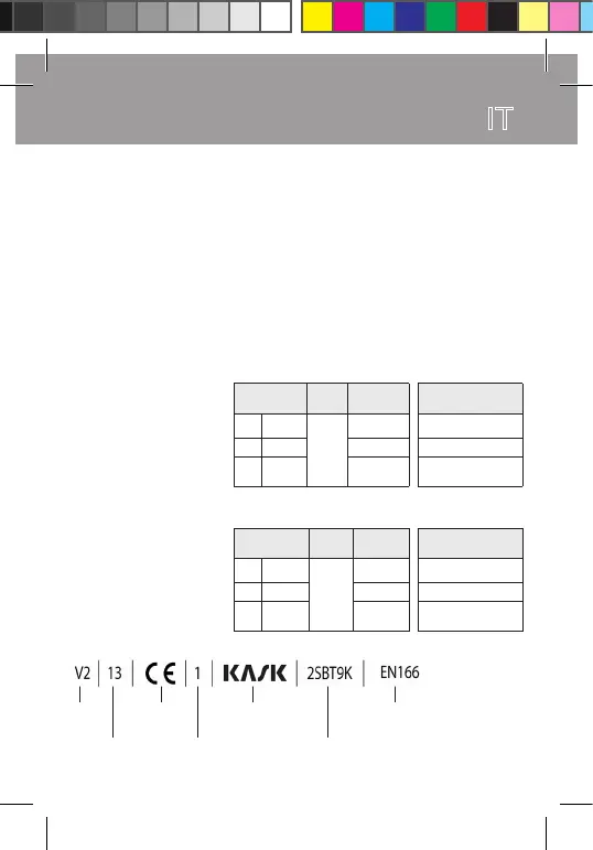 rivelatori dello stato di deterioramento della visiera e se ne consiglia la sostituzione.