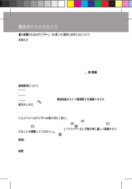 ださい。 予定されていない処置や変更はいずれも、バイザーの保護機 能を損なう恐れ