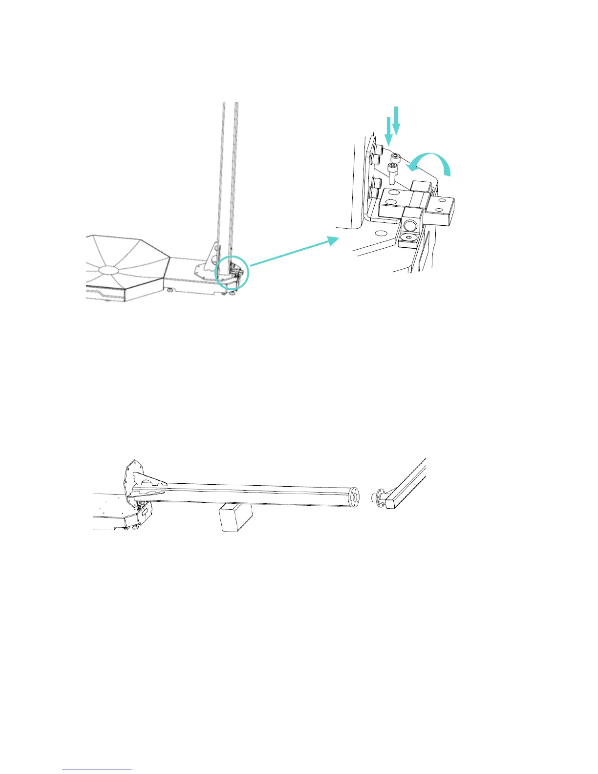 4. At least two persons lift the support pillar and place it at the location on the base plate as shown in the figure. Turn