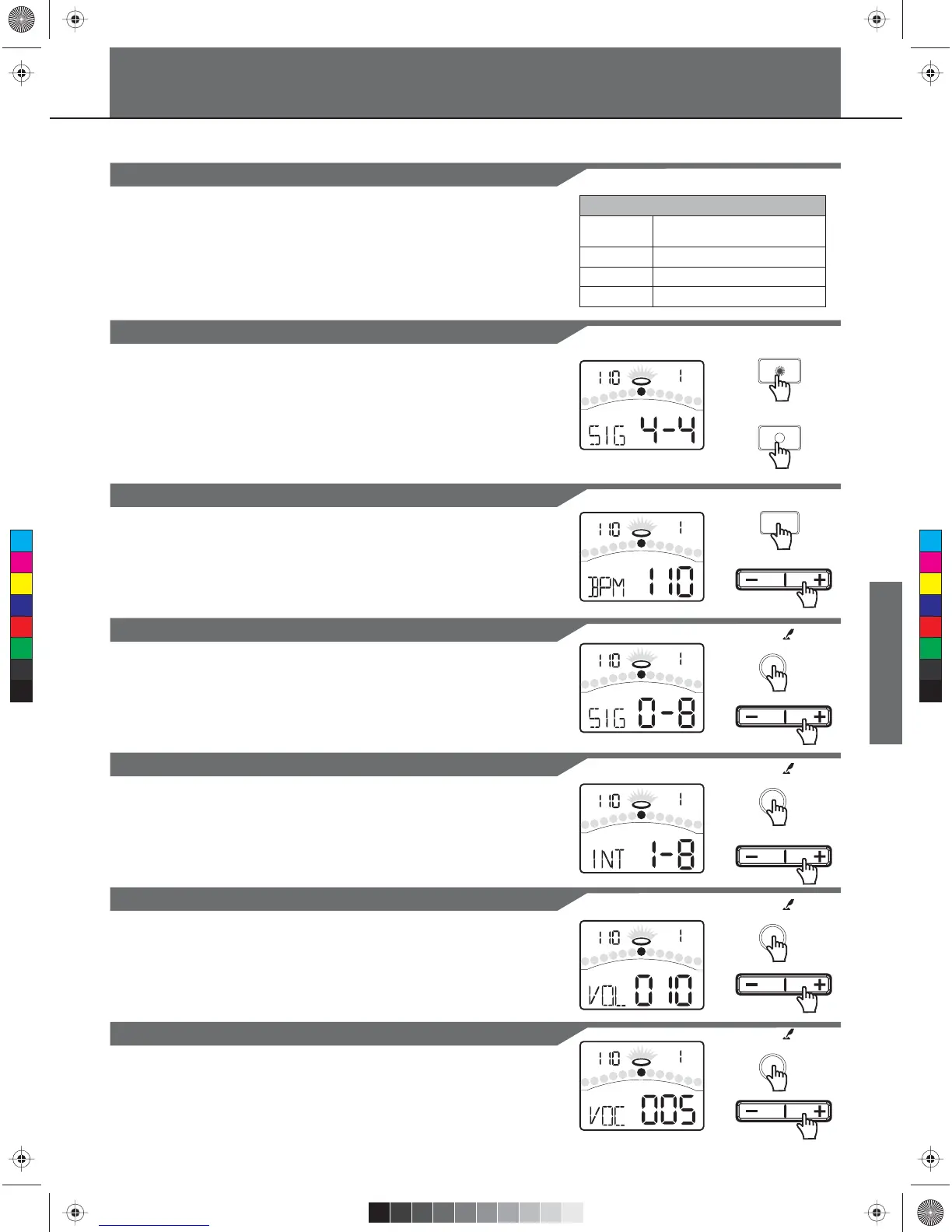 CLICK LED will blink accordingly. The metronome will play