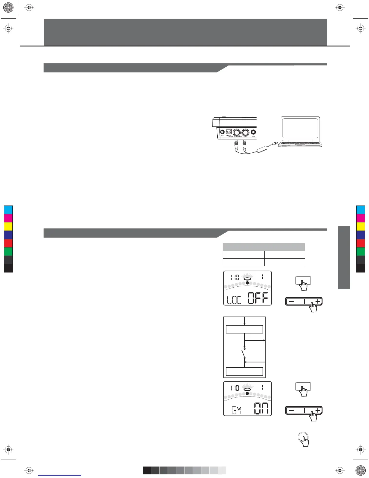 Press the [ - ] or [ + ] button, set GM mode to ON or OFF.
