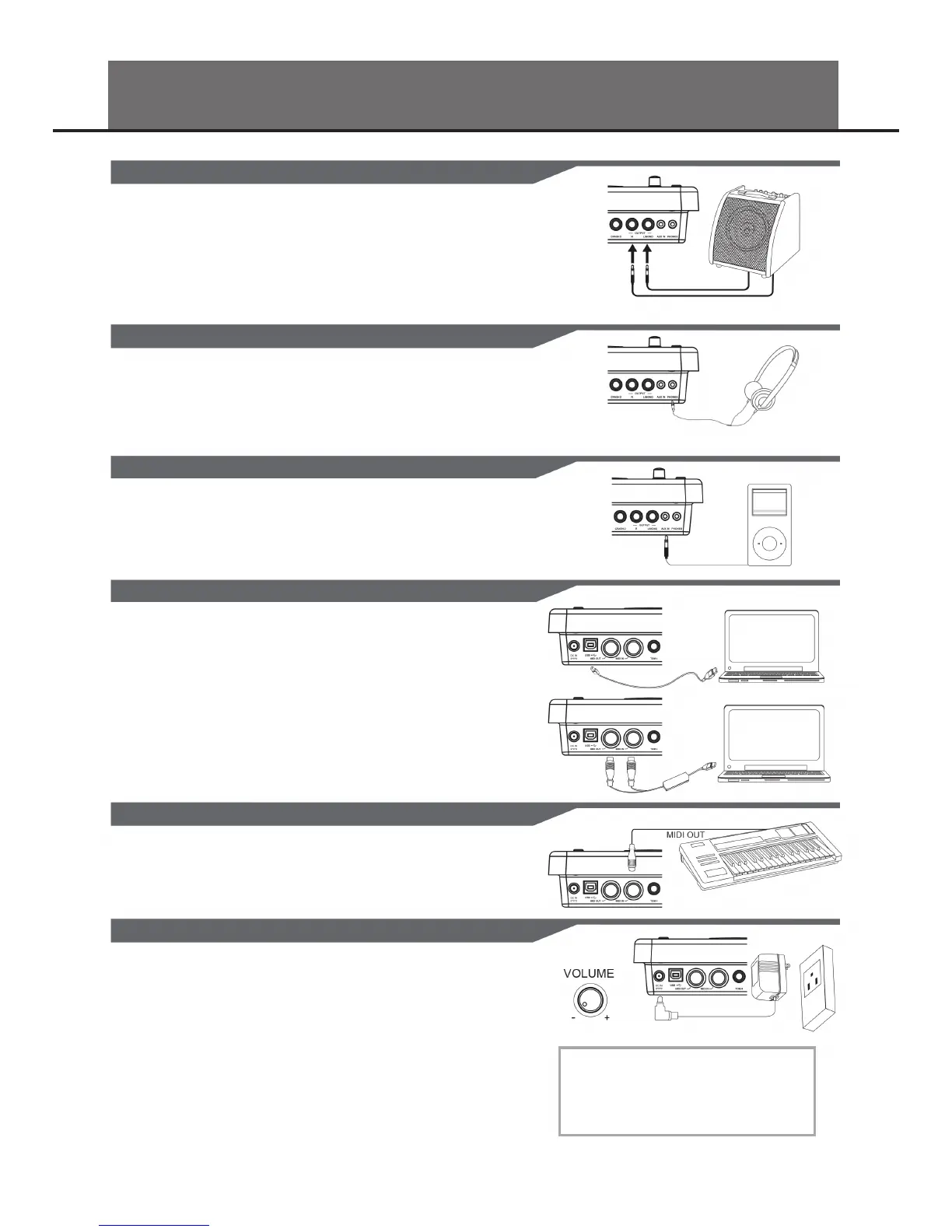 MONO and R jacks. The line output volume is controlled by the VOLUME knob.