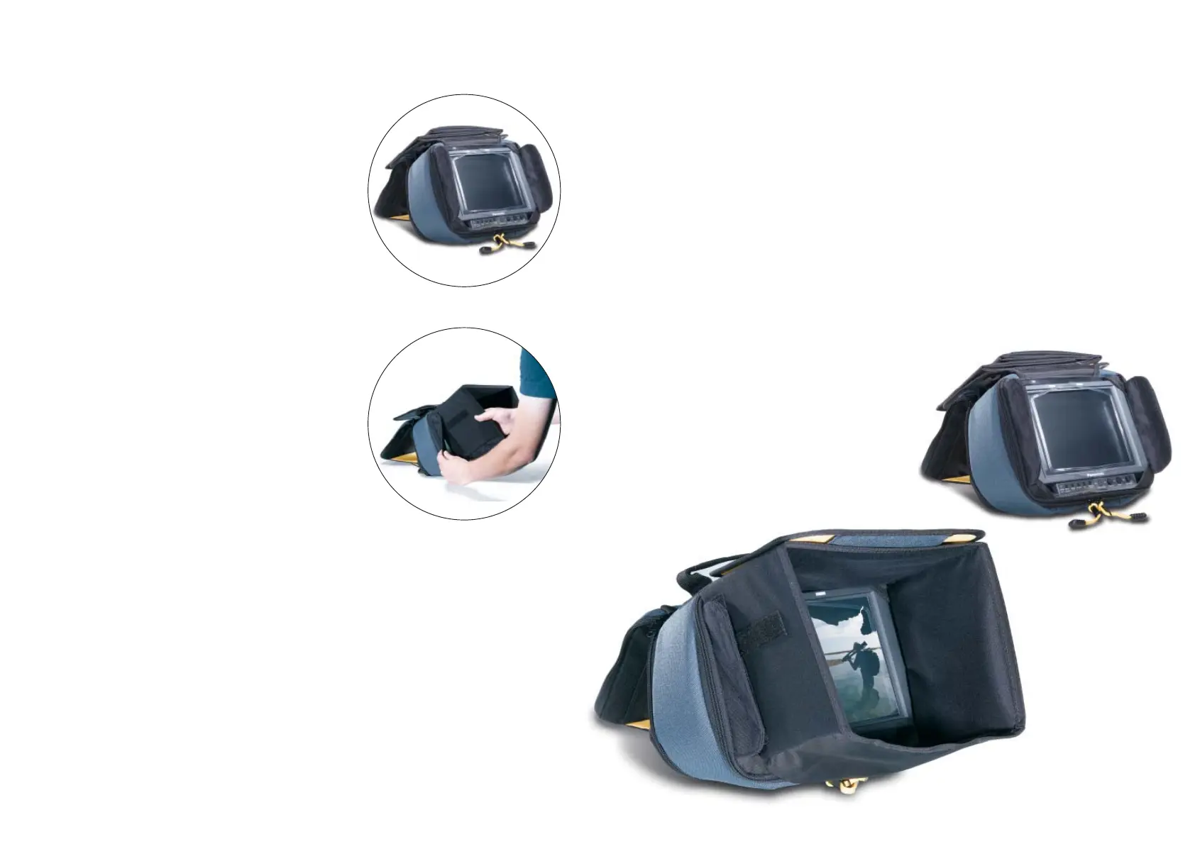 Zippered bottom opening for connecting case to stand or running 4.