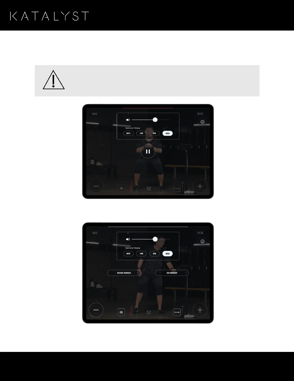To pause your workout session, tap in the middle of the iPad screen to display the