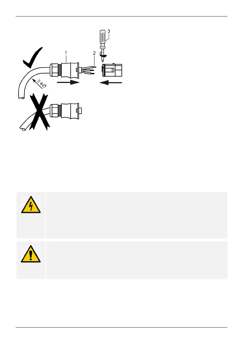 2. Introduce wire ends (2) into the plug. Ensure that the bending radius of the cables is