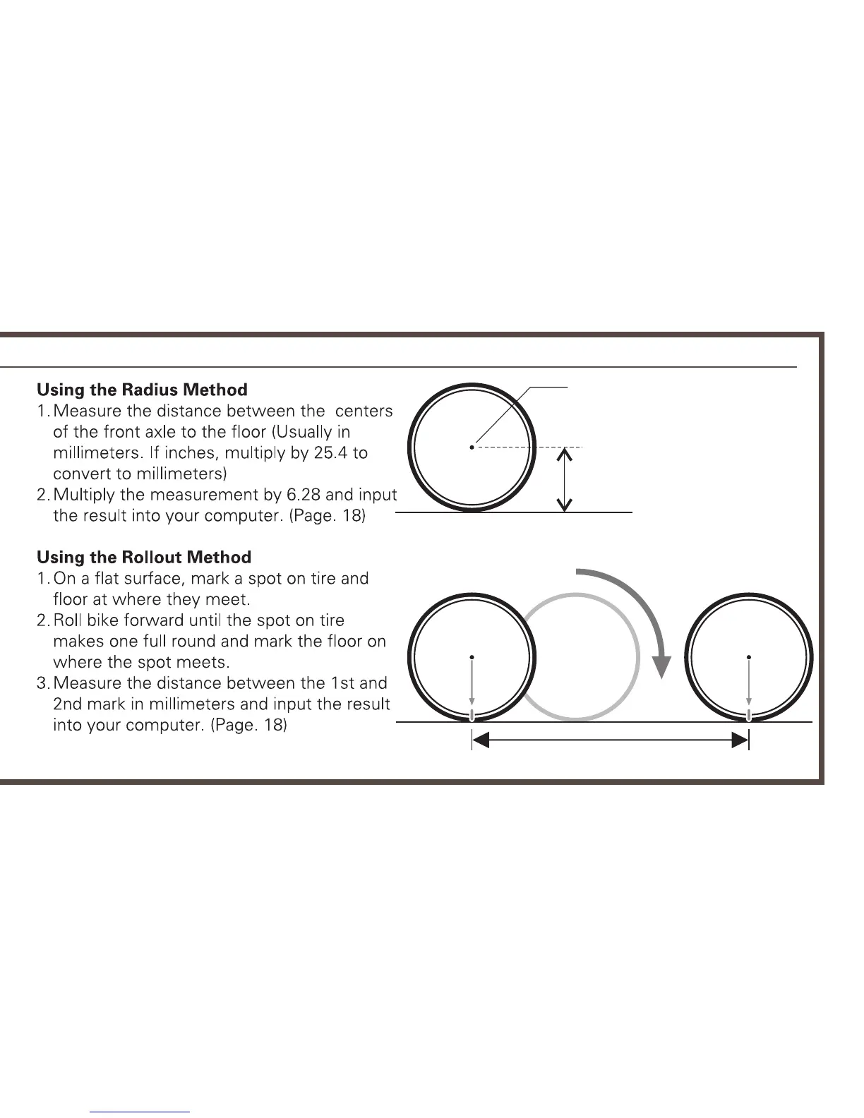 Kathmandu Cycle Computer - Wheel Size Measurement; Radius Method for Wheel Size; Rollout Method for Wheel Size