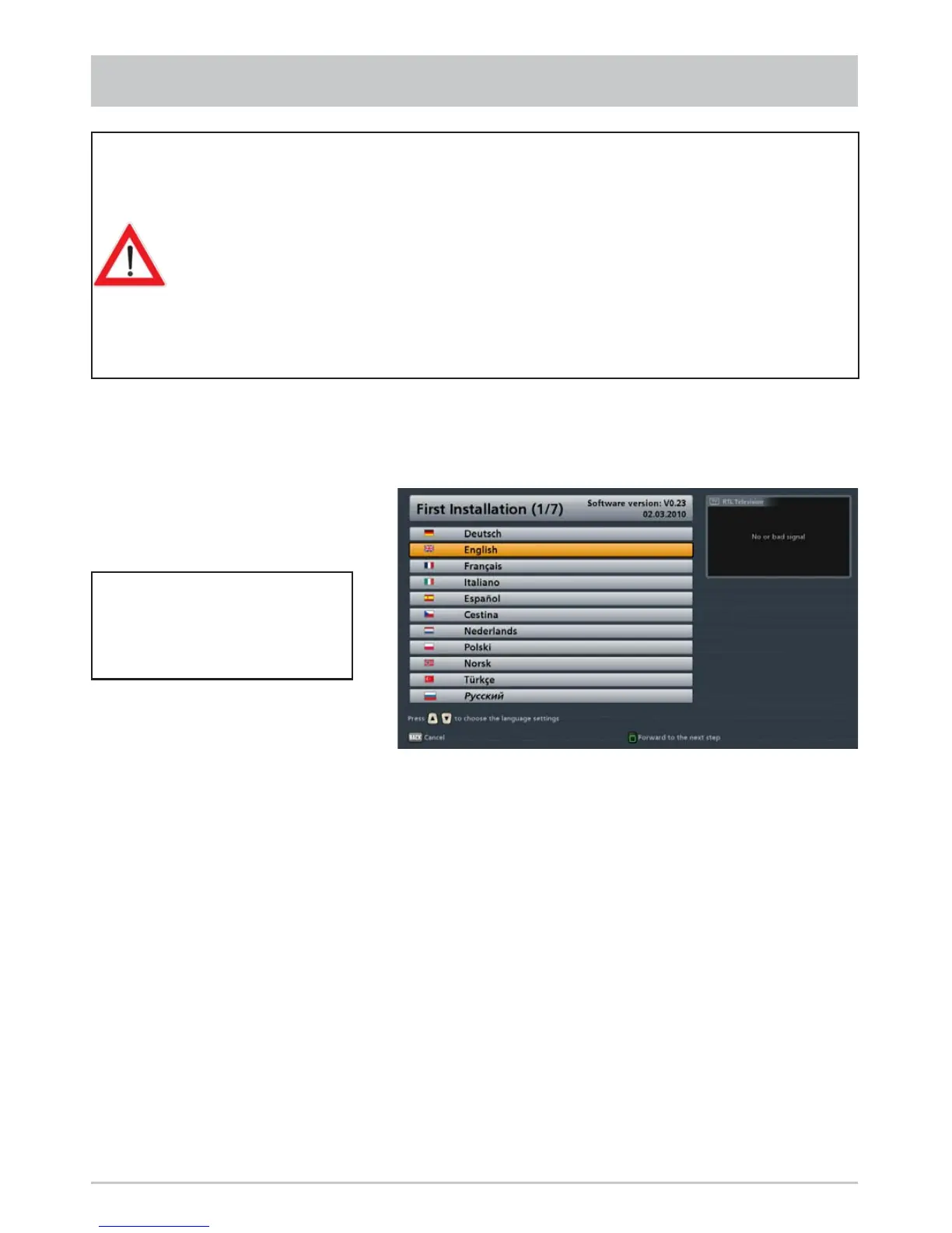 the receiver. Switch on your receiver at the power switch on the rear of the unit. The following display