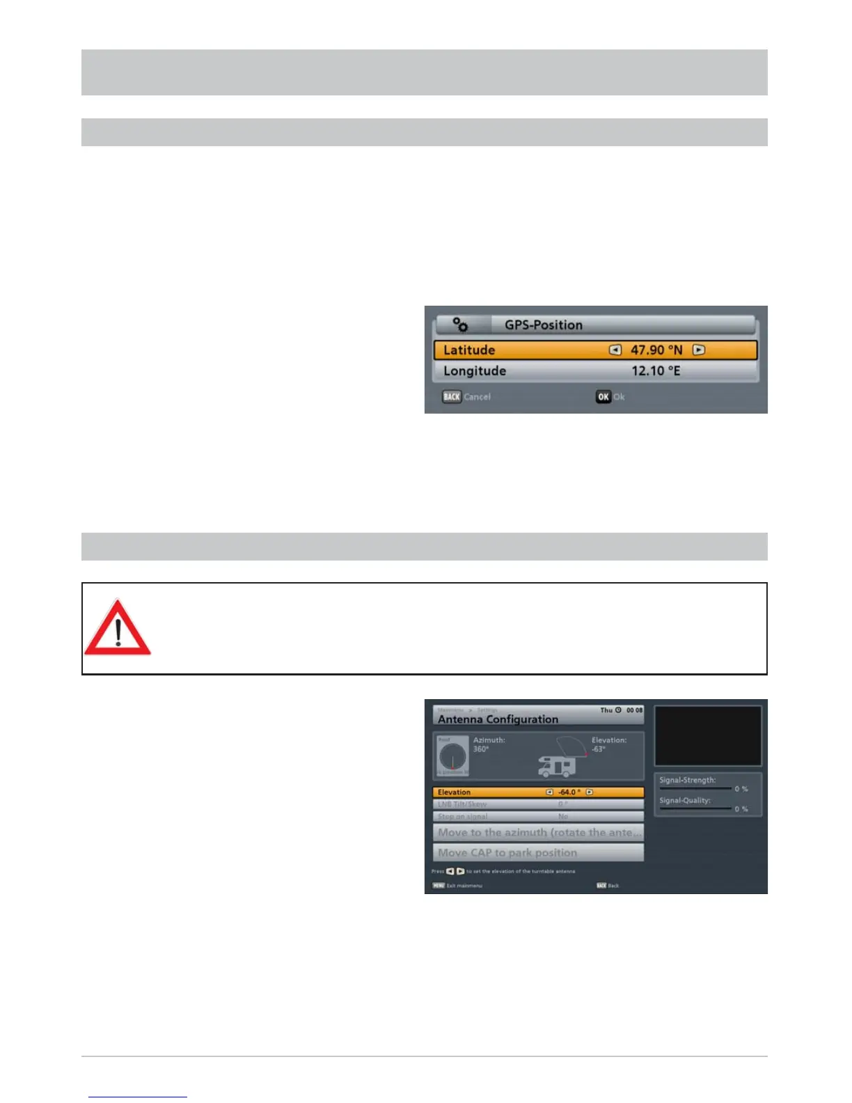 antenna manually to a satellite. Watch out for any obstacles that the antenna