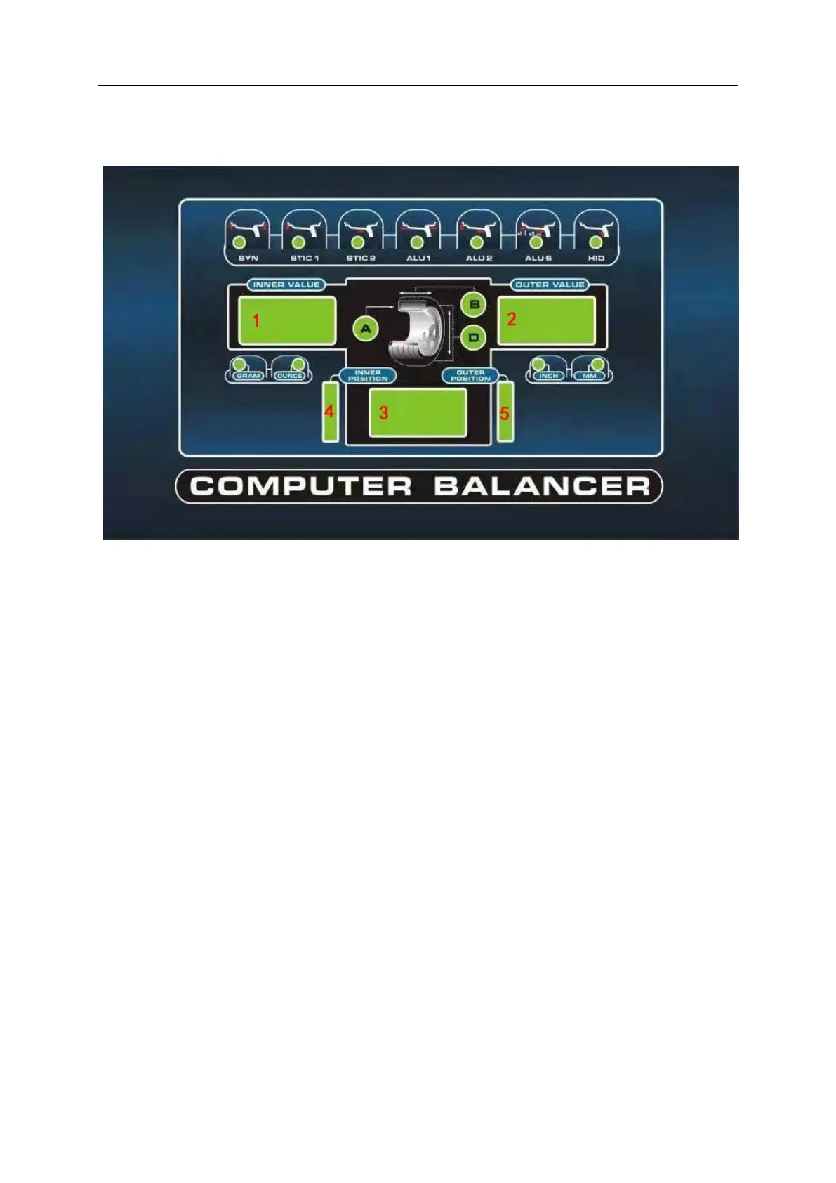 -Window 4. displays inner side unbalance position indication (inner side with key