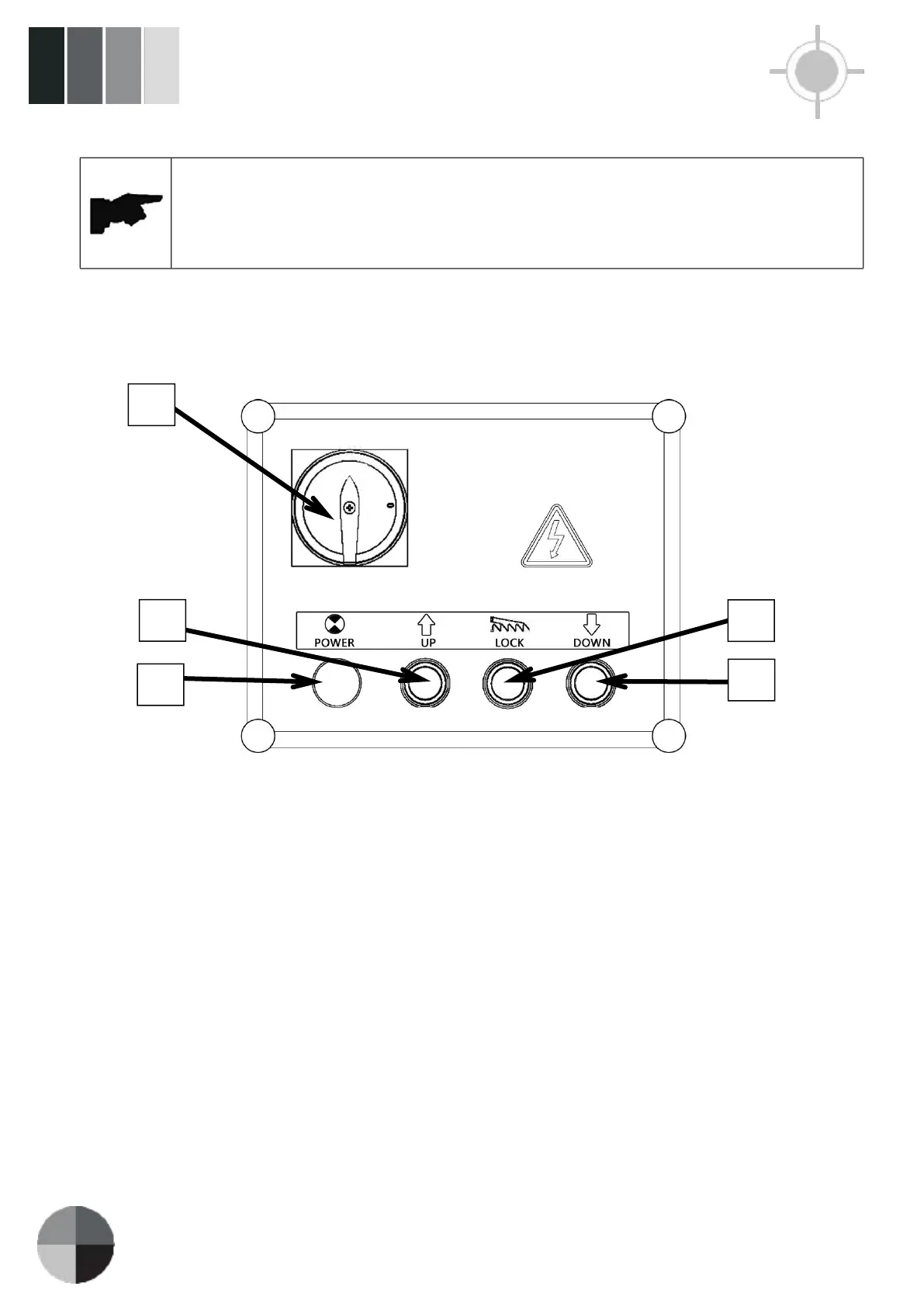 OFF: the lift electric circuit is not powered; the switch can be padlocked to