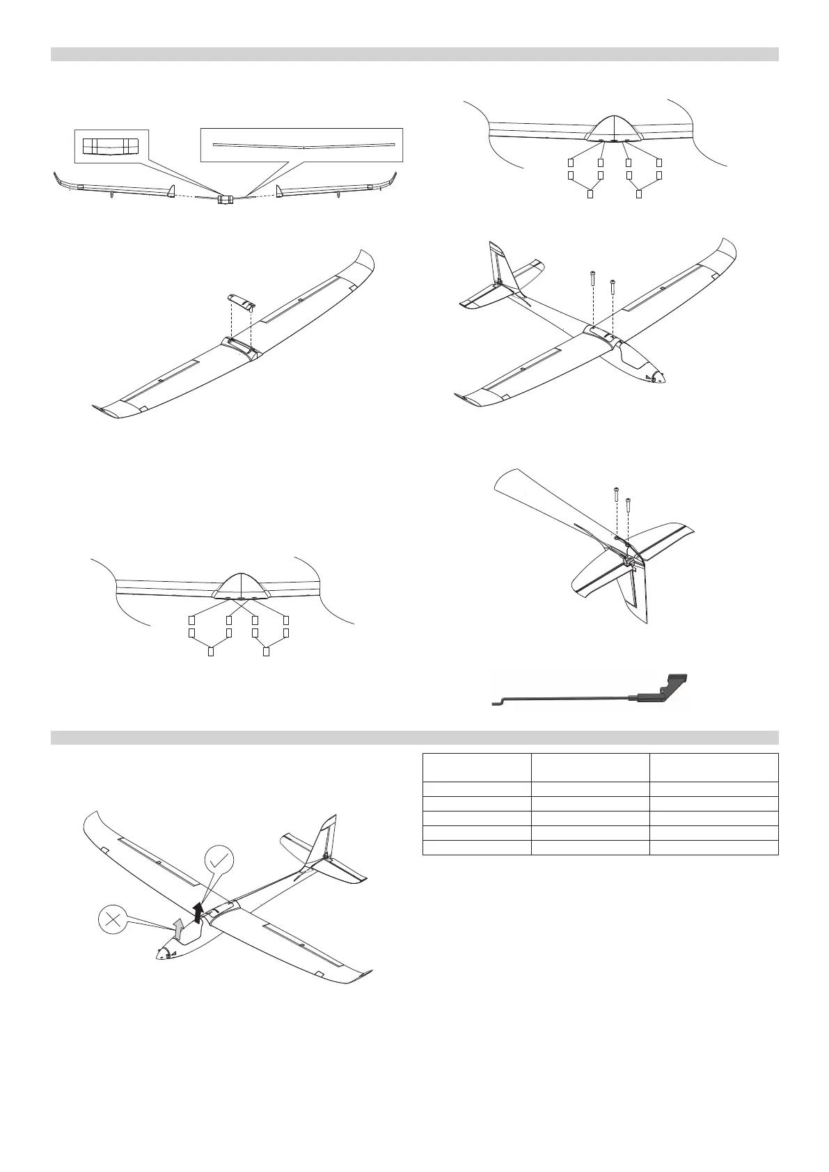 1. Montieren Sie das Seiten- und Höhenleitwerk und befestigen Sie sie an