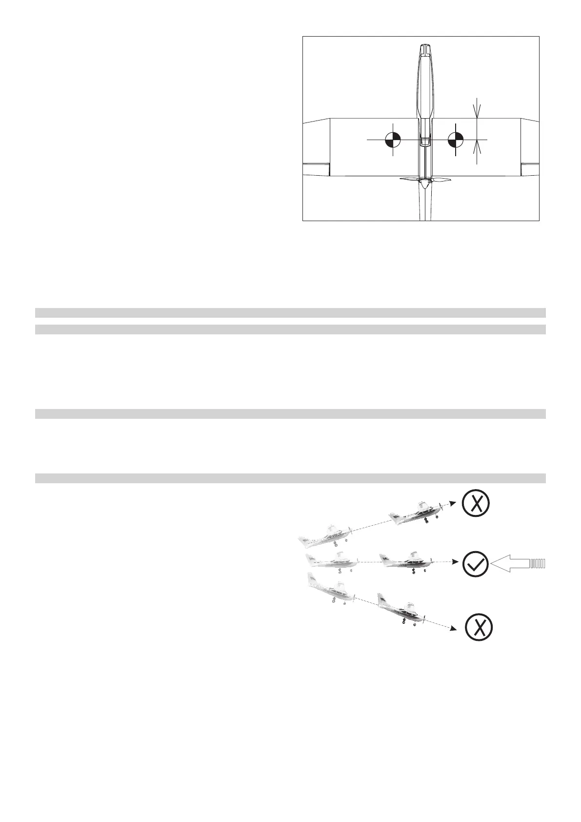 Fingerspitzen 70 mm hinter der Flügelvorderkante für den ersten Flug