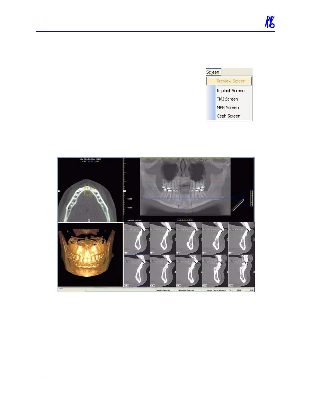 • Axial View - double-click displays the TMJ Screen.