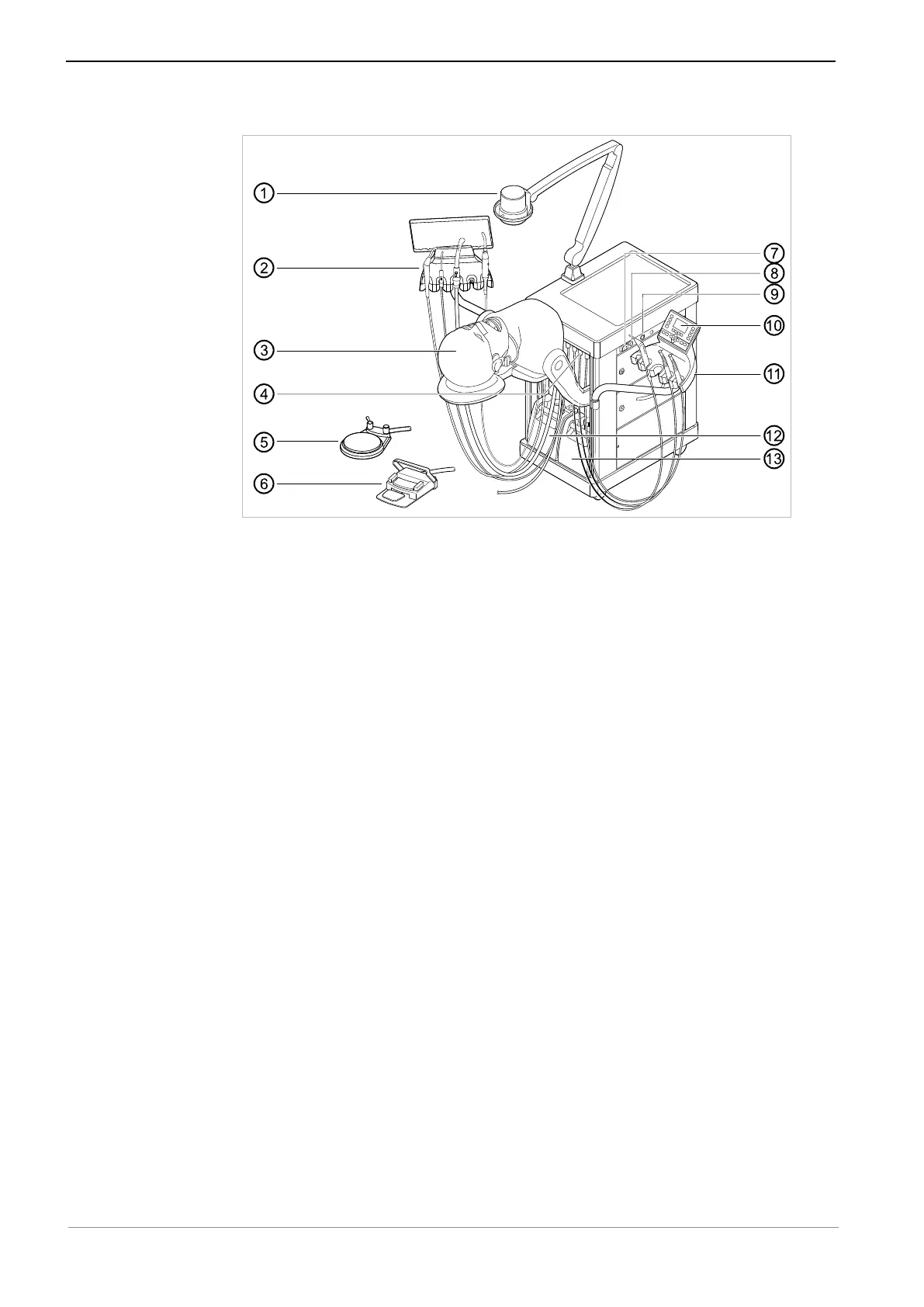 ⑪ Dentist element ⑫ EBS Suction, integrated, optional, in-