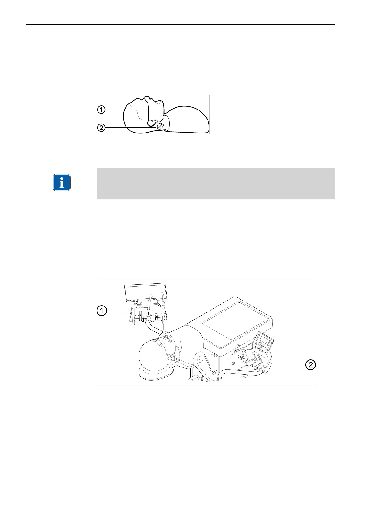 ▶ Loosen the screw ② on the head ① of the dental patient simulator.