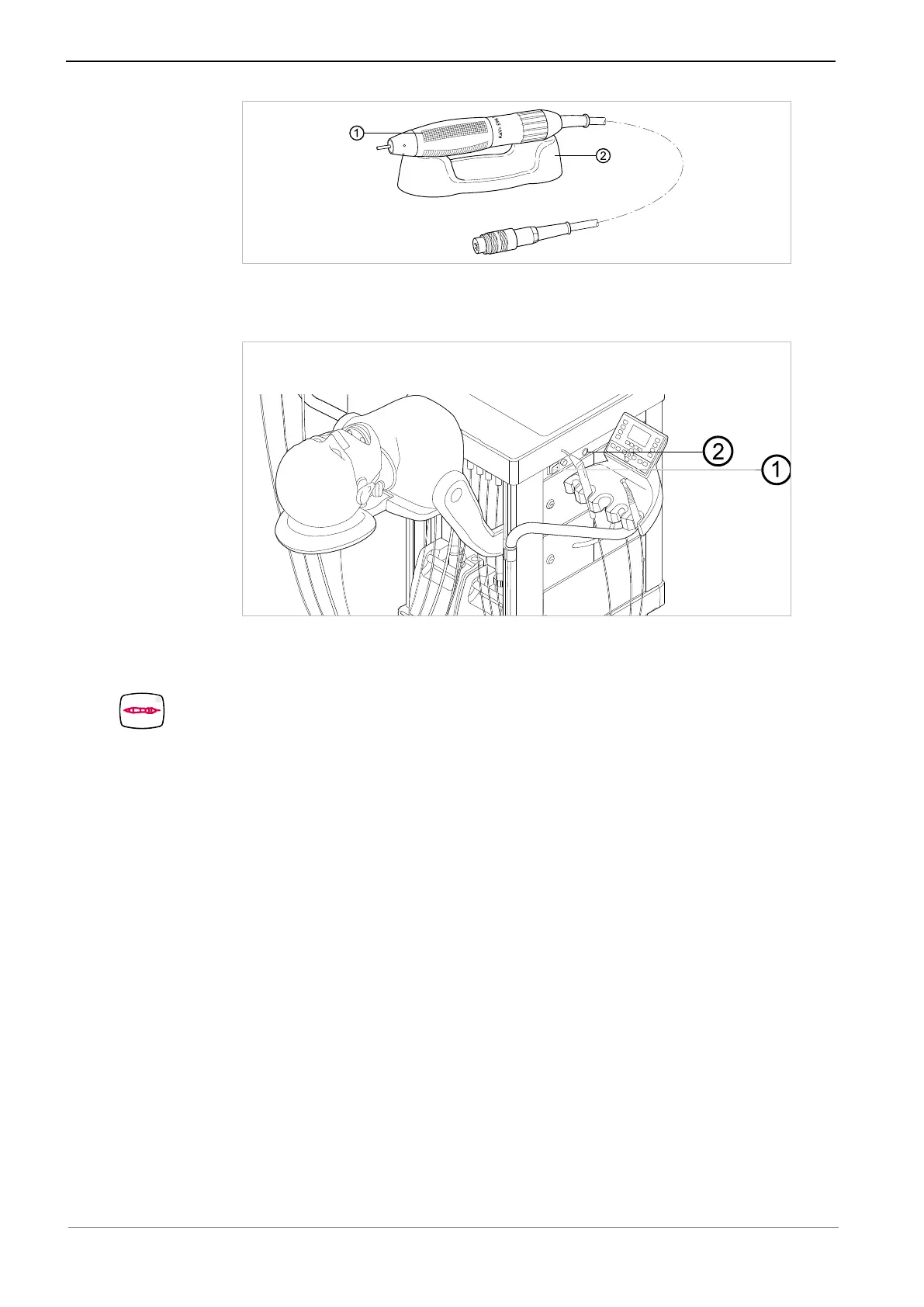 ▶ Always place the handpiece ① on the handpiece holder ②. When running the