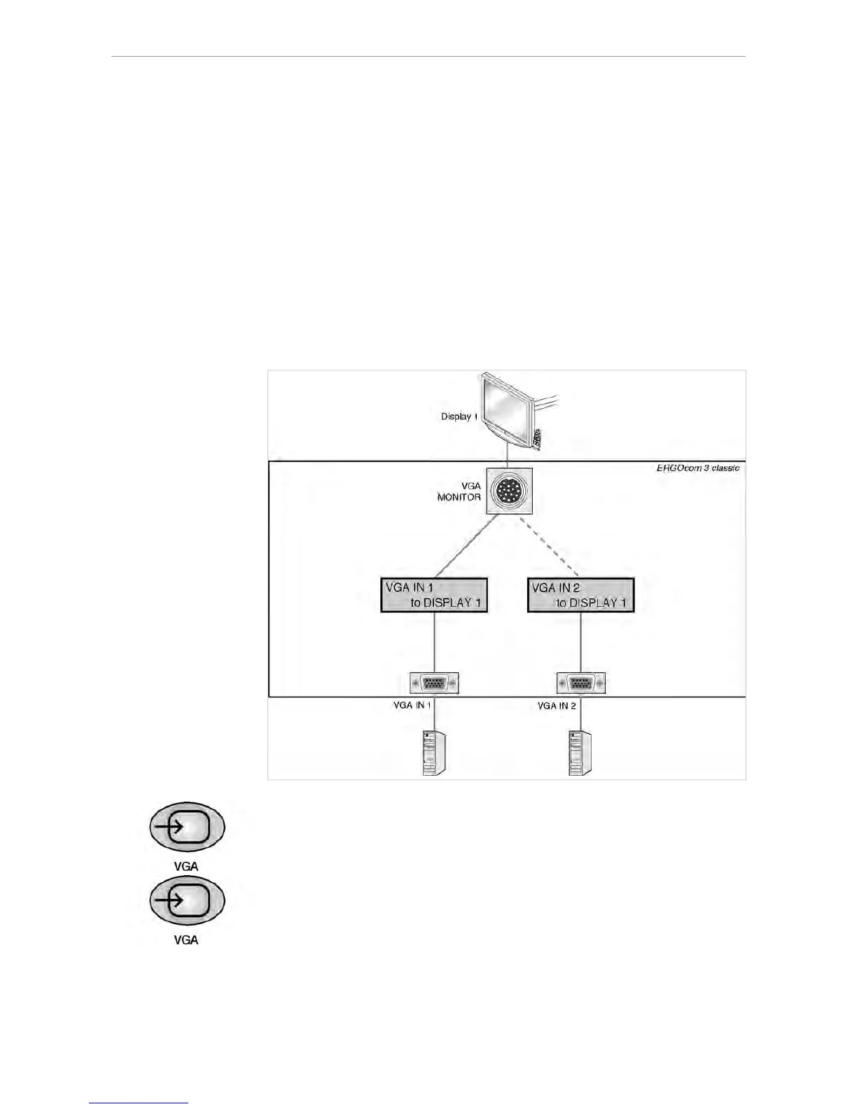 ▶ Select the required VGA input by pressing the VGA IN button.