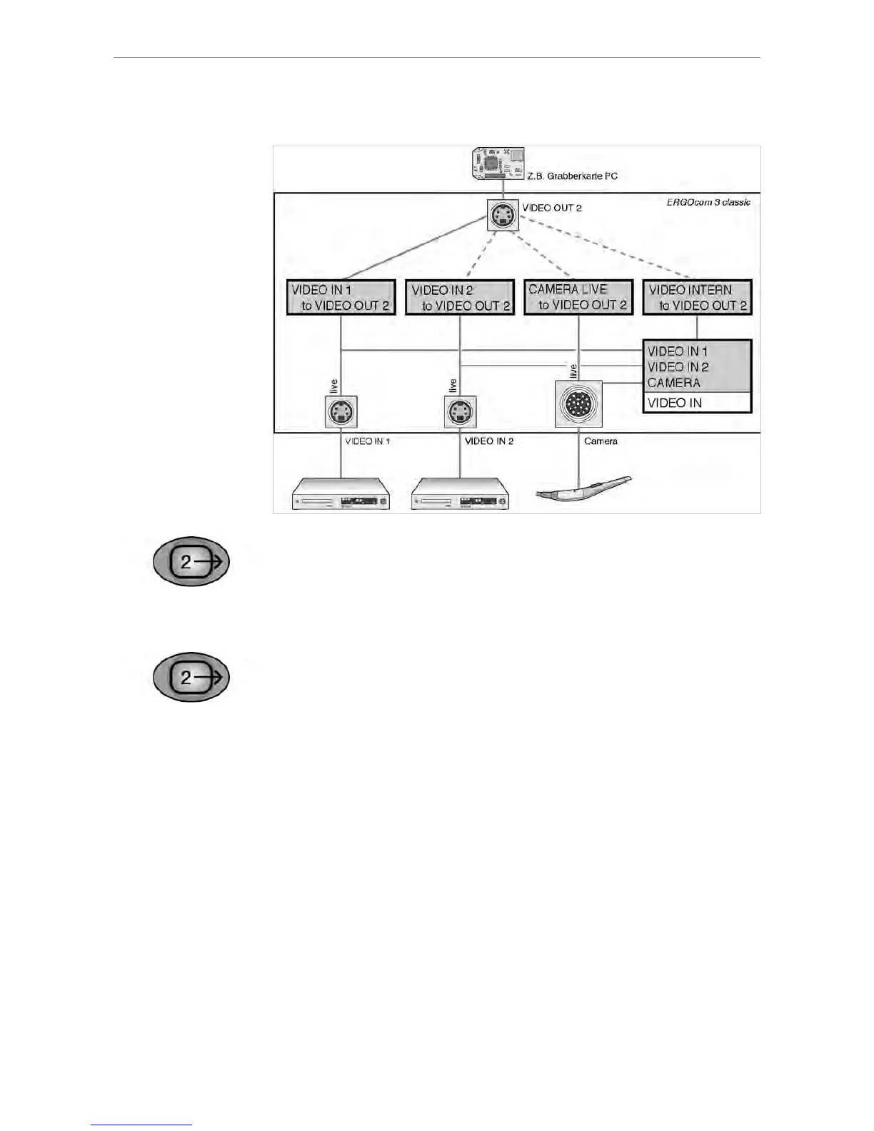 ▶ Select the required VIDEO input by pressing the VIDEO OUT 2 button.