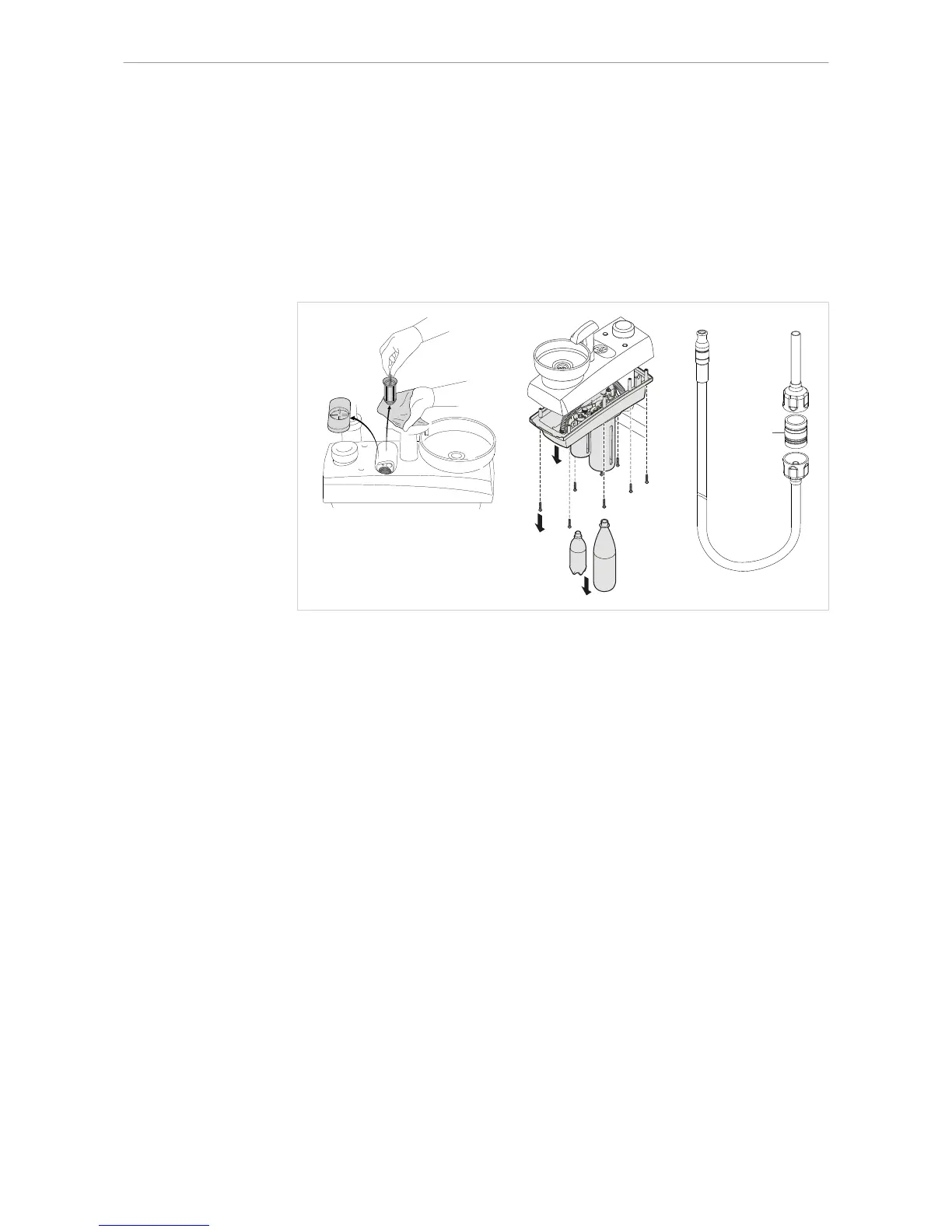 ▶ Mundspülbeckenabfluß und alle Siebe im Absaug- und Abflußsystem reinigen.