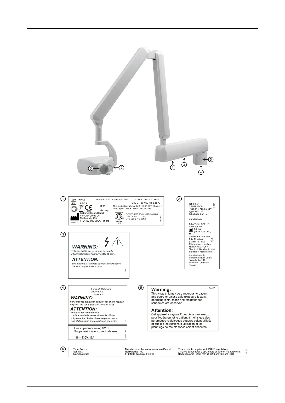 KaVo FOCUS - Labels on the Unit