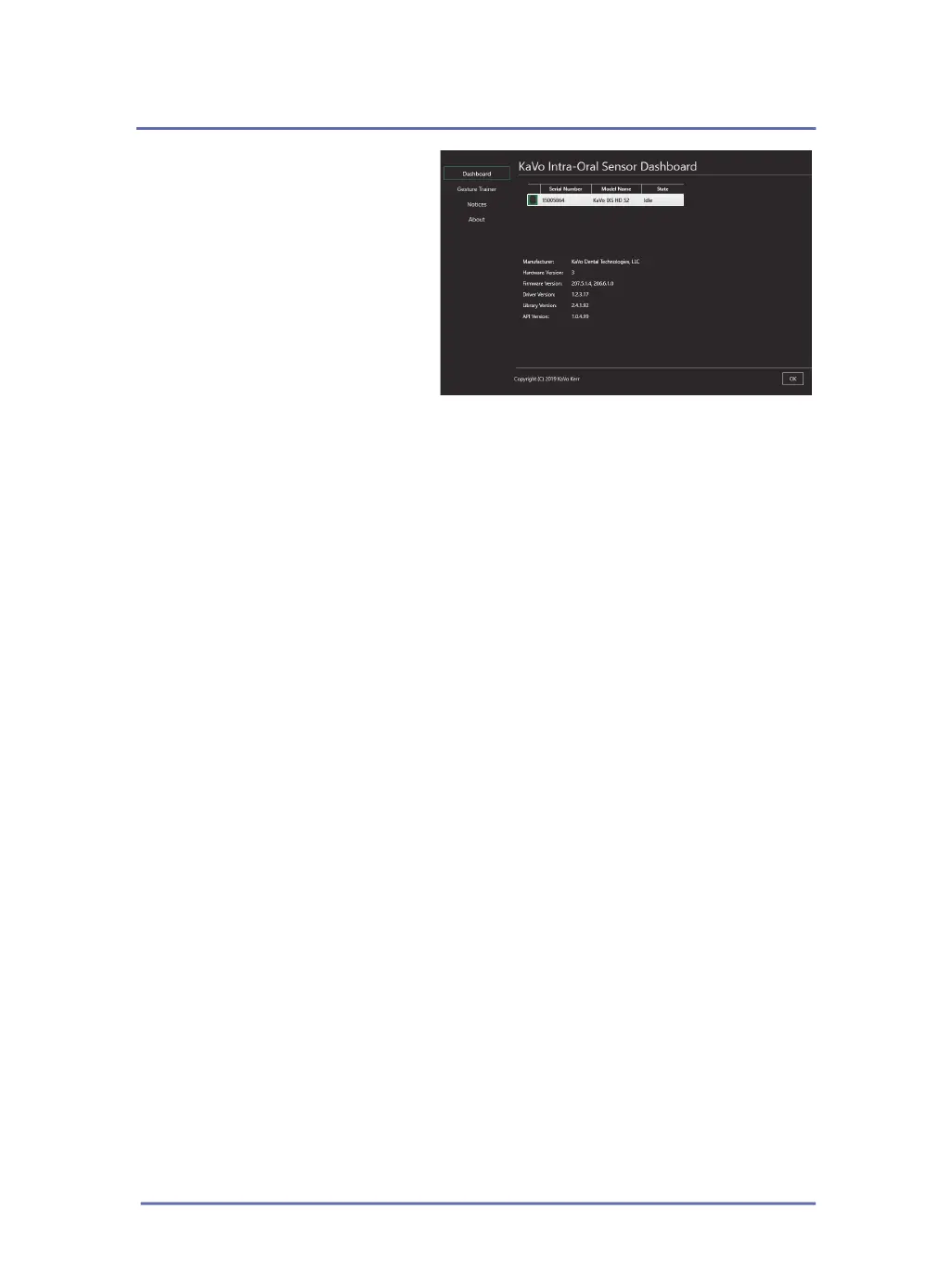 4. The Intra-Oral Sensor Dashboard also shows the serial number and state of the