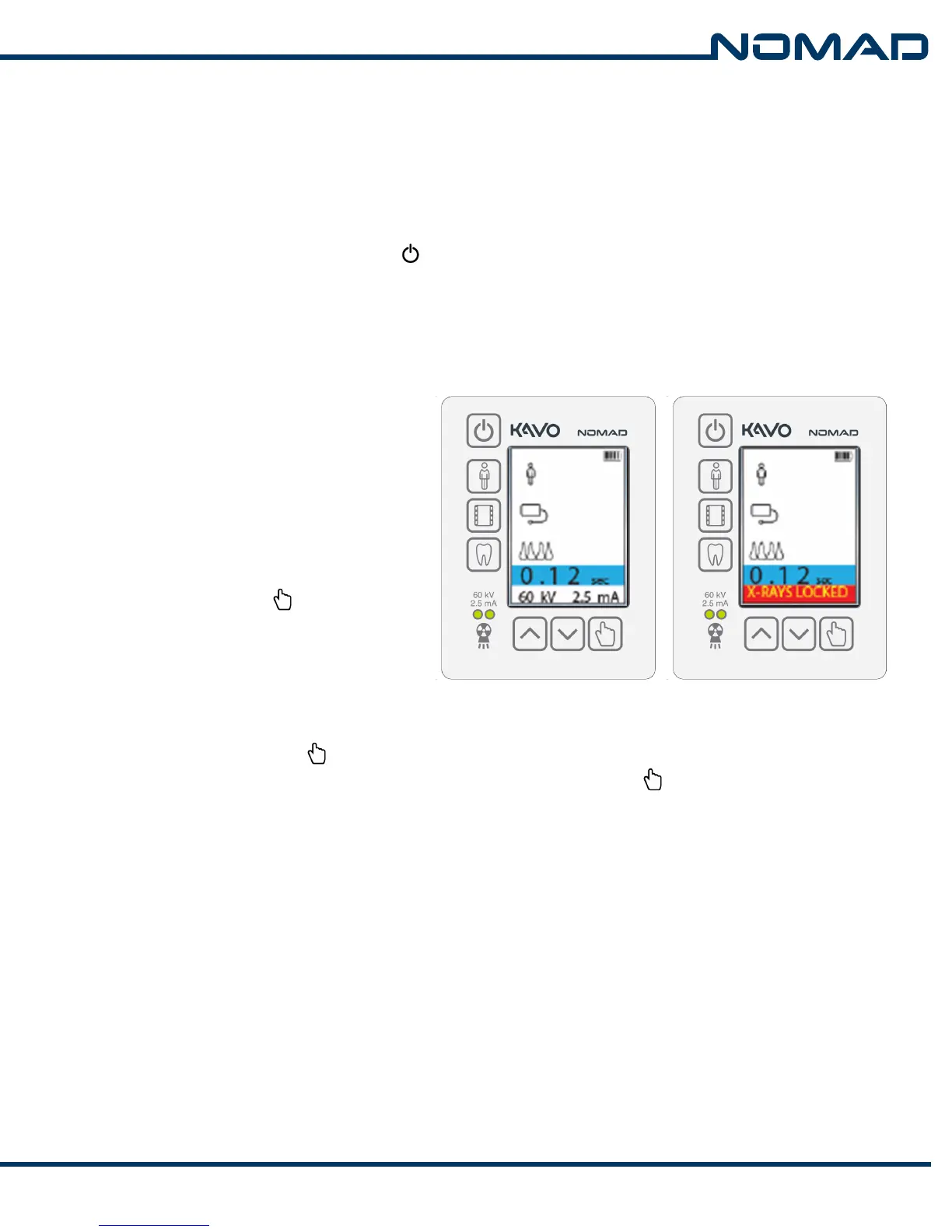 Press and release the Power button to turn on KaVo NOMAD PRO 2. An audible