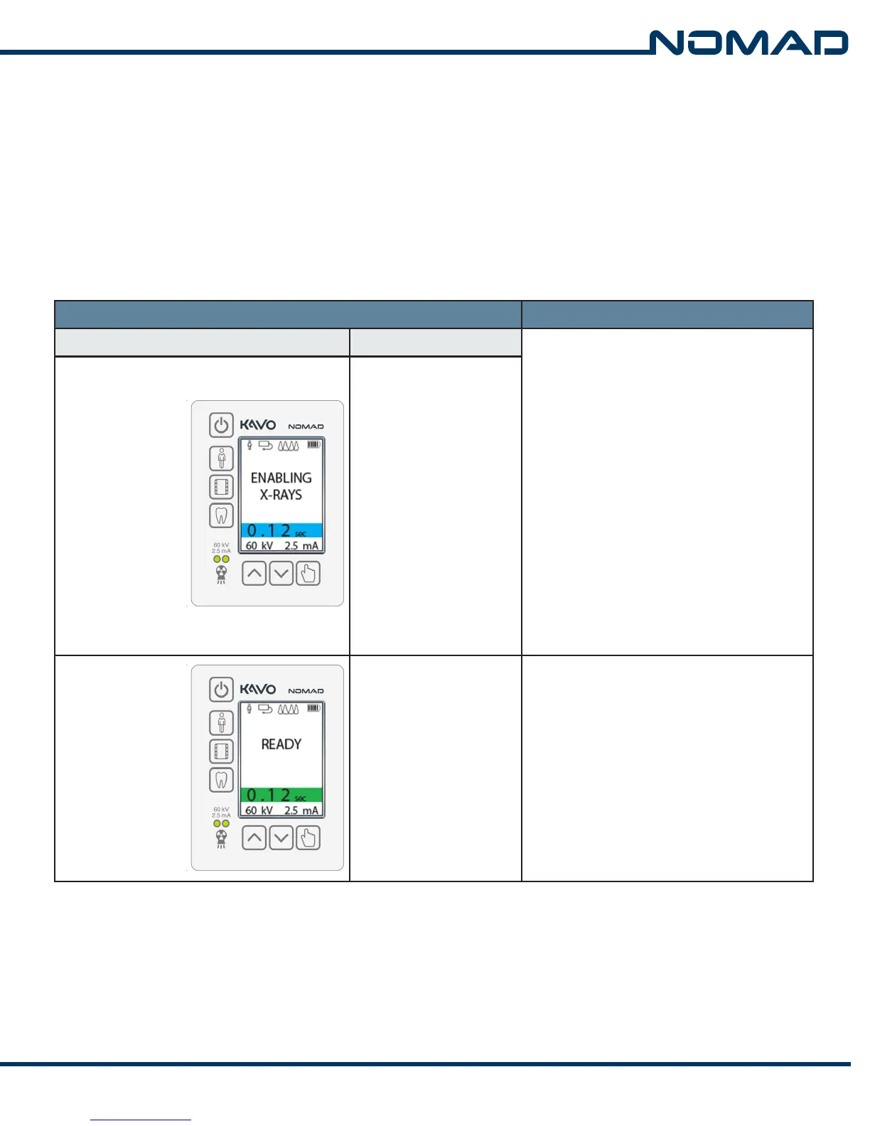 operators, patients, and/or the KaVo NOMAD PRO 2. The visual/audible alerts confirm