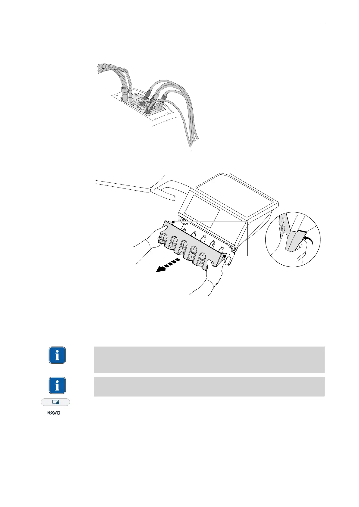 4 Pull the latches outward evenly and carefully remove the handpiece holder.
