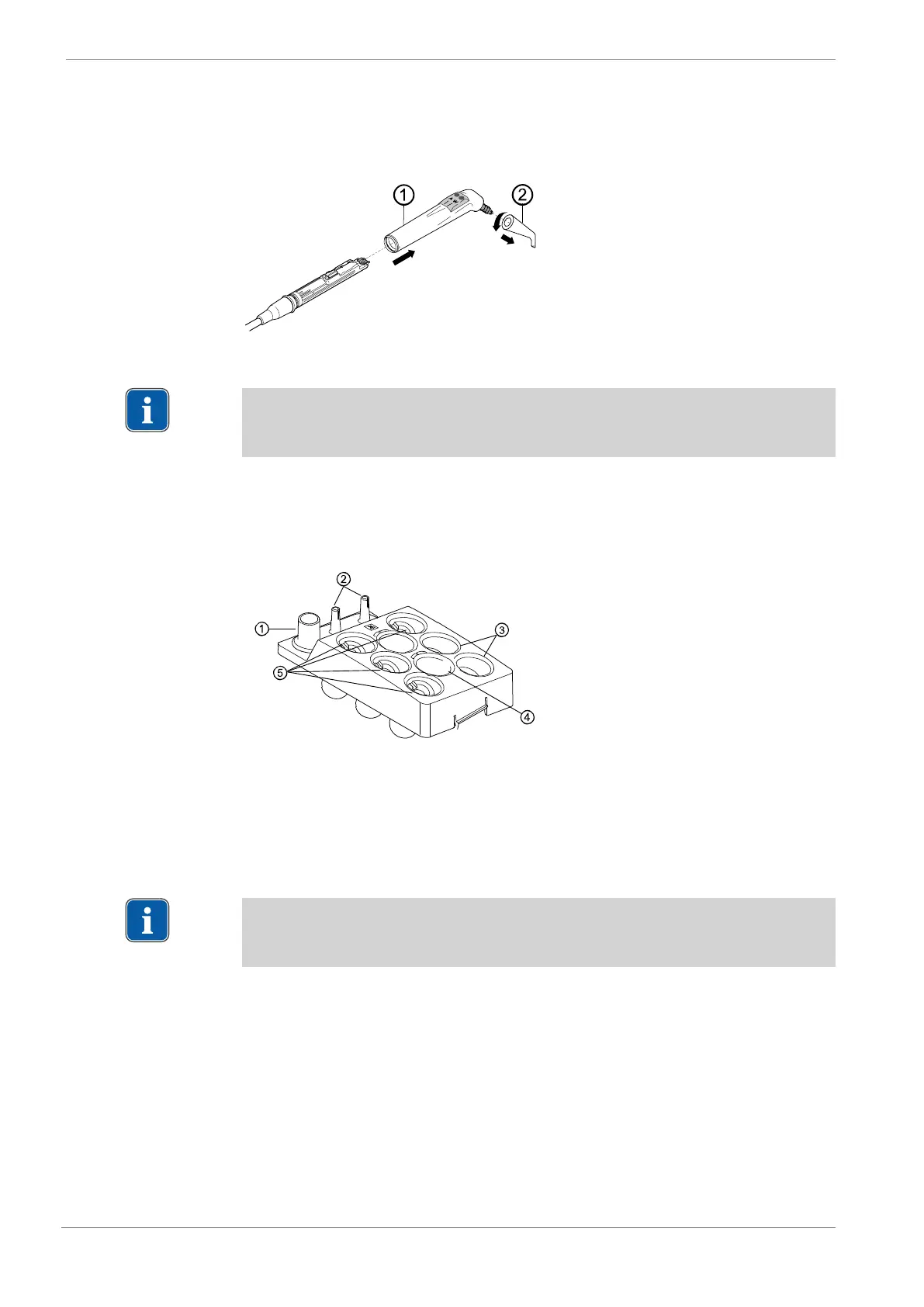 4 Place the three-function or multifunctional handpieces without cannulas ②