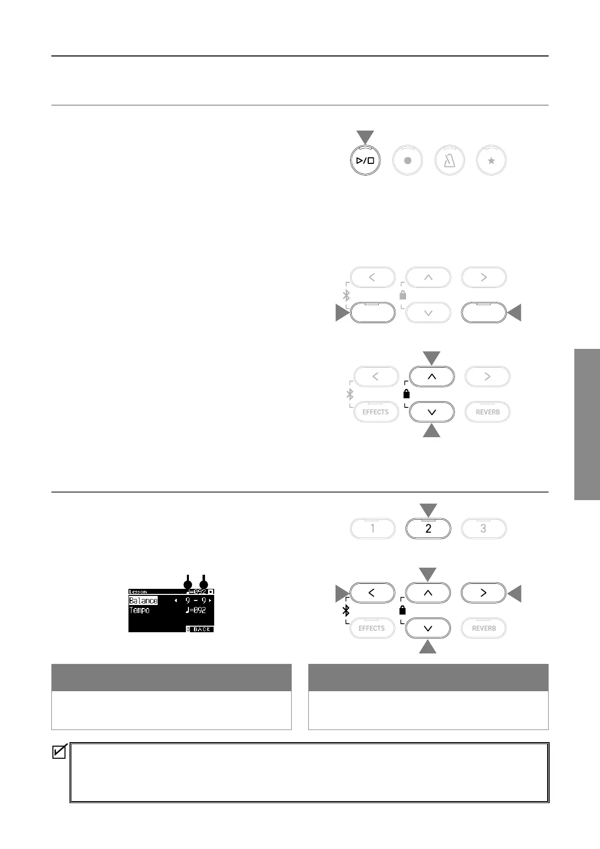 • The sound quality may vary depending on the interval or timing of the performance when practicing along with a lesson