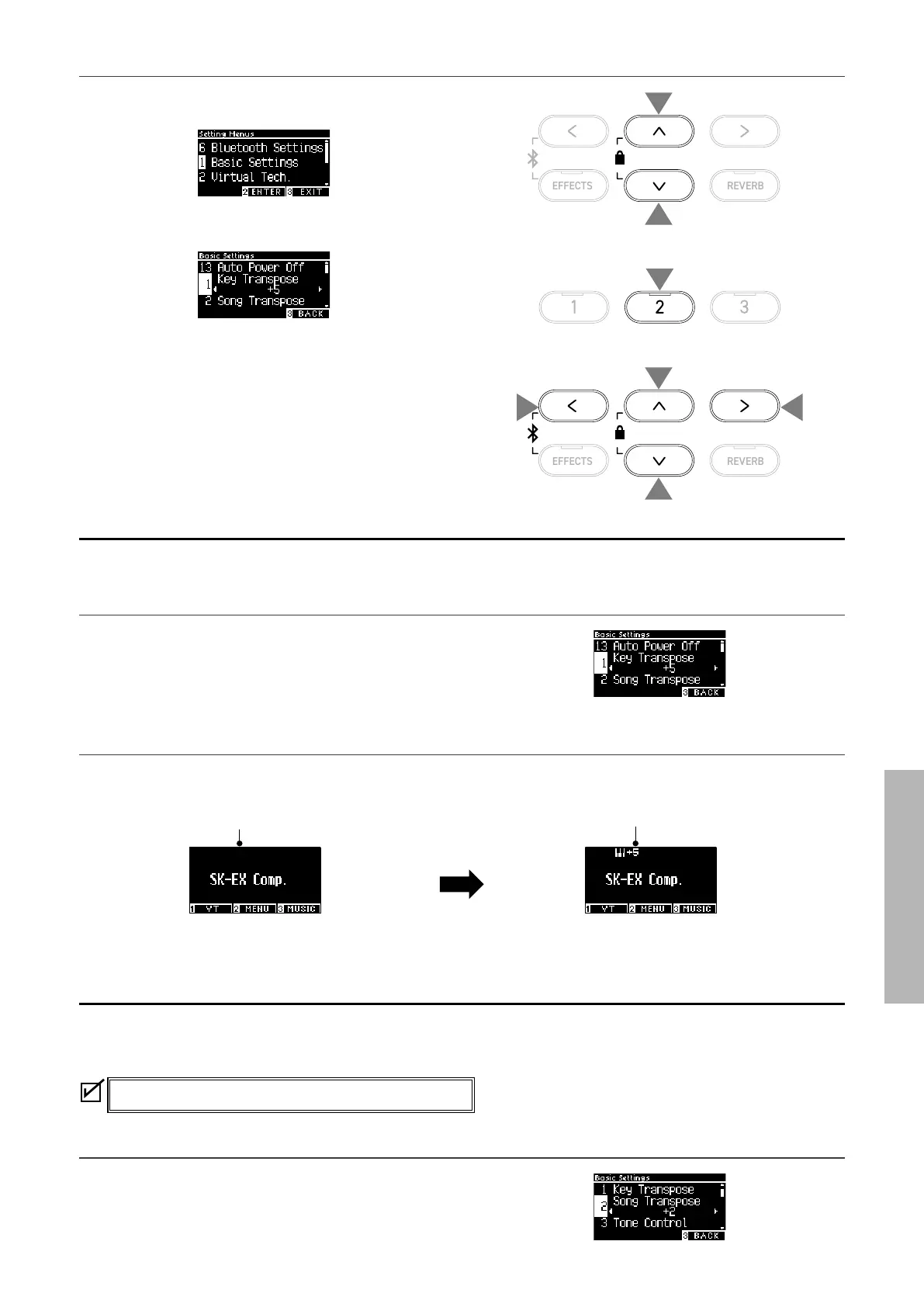 The Song Transpose function transposes songs played from a USB memory device (SMF and KSO les),