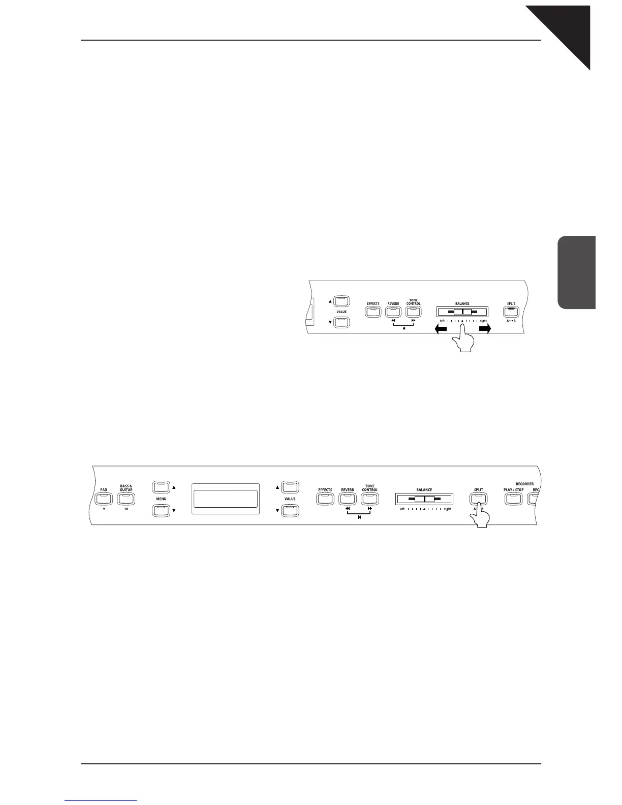 To change the Lower sound, Press the desired SOUND SELECT button while holding down the SPLIT