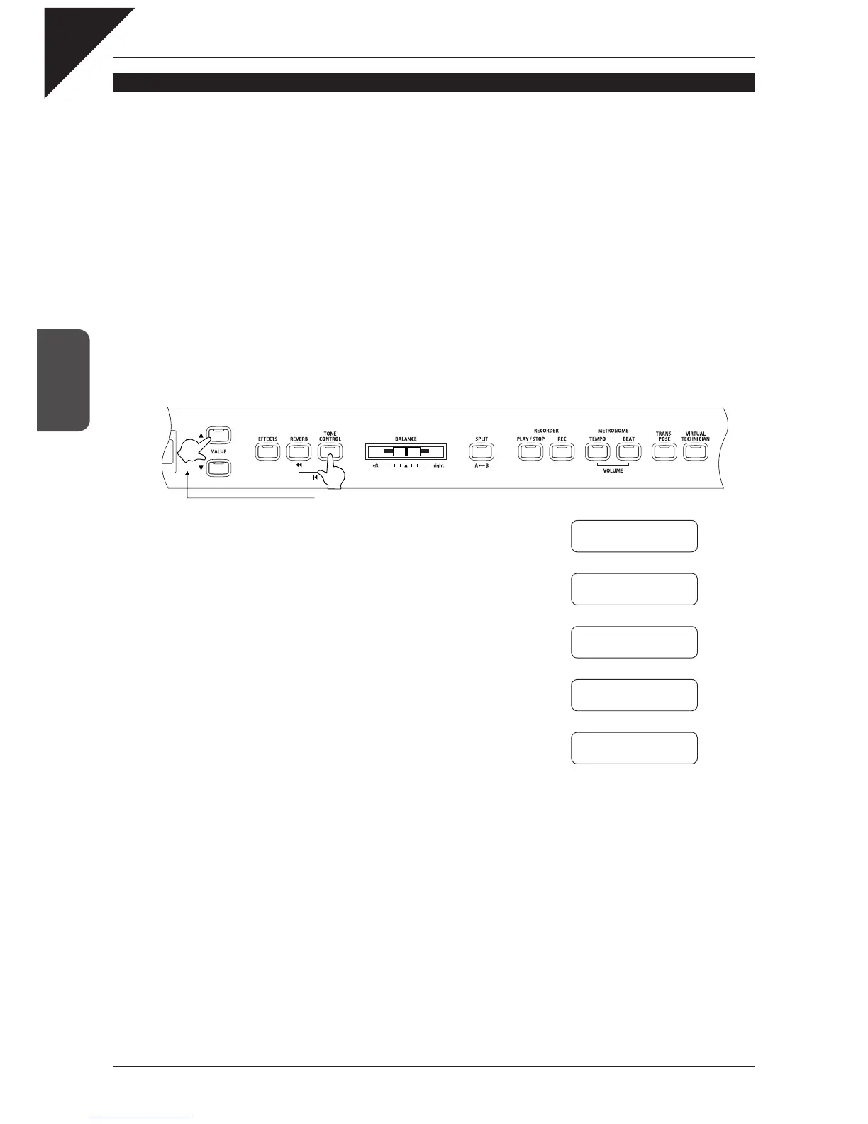 Tone control allows you to adjust the sound character of the CA piano to your taste. It can also be used to opti-