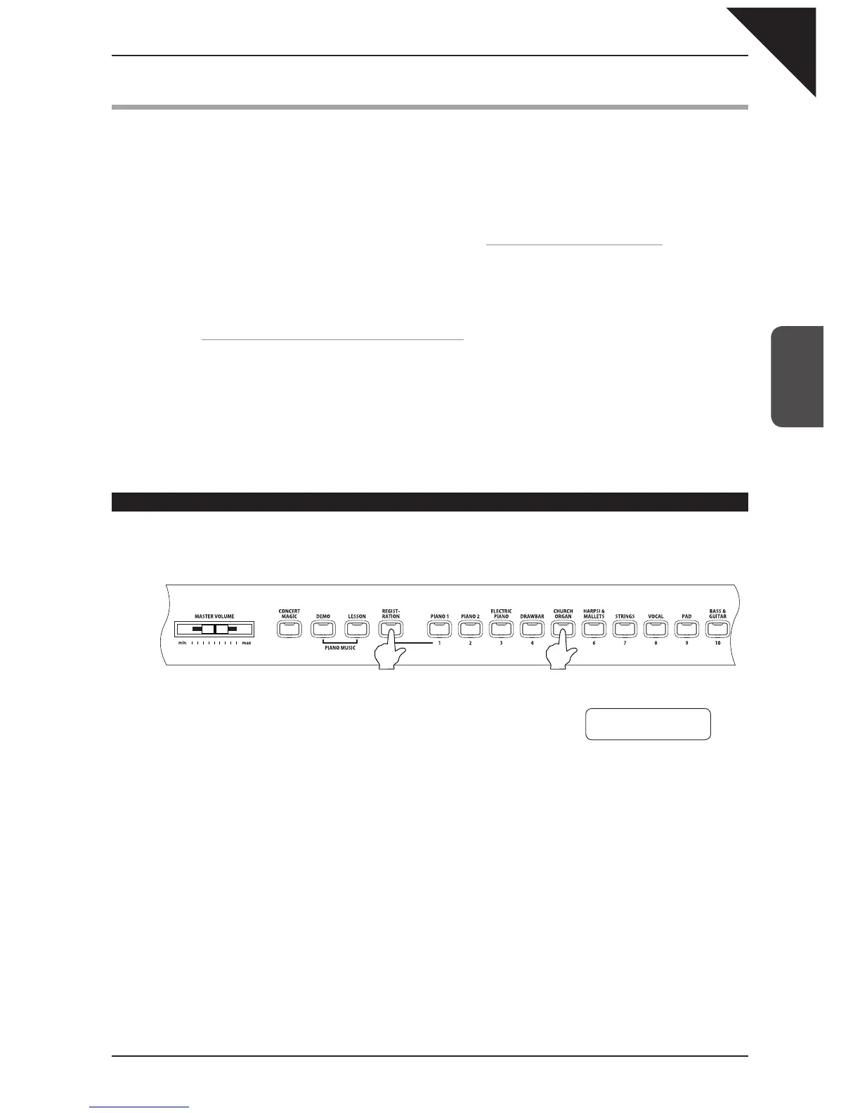 To select a different registration, press any one of the REGISTRATION SELECT buttons (= SOUND