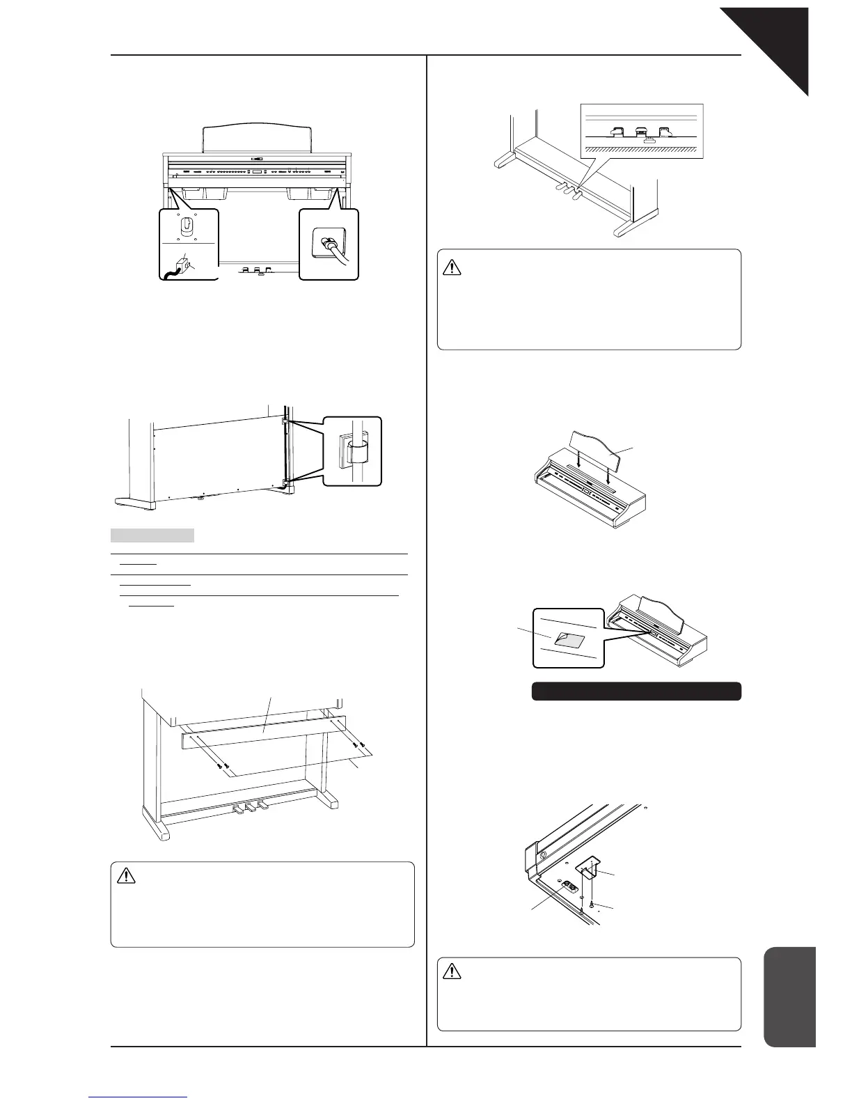 (1) Connect the pedal cord and the power cord to the piano.