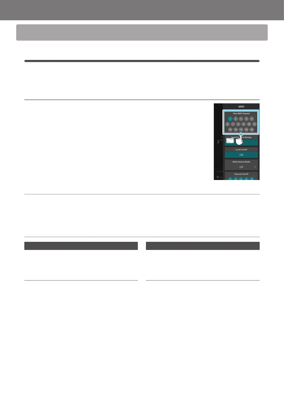 In the Play MIDI Channel area, tap the number buttons to select the transmit/receive MIDI channel.