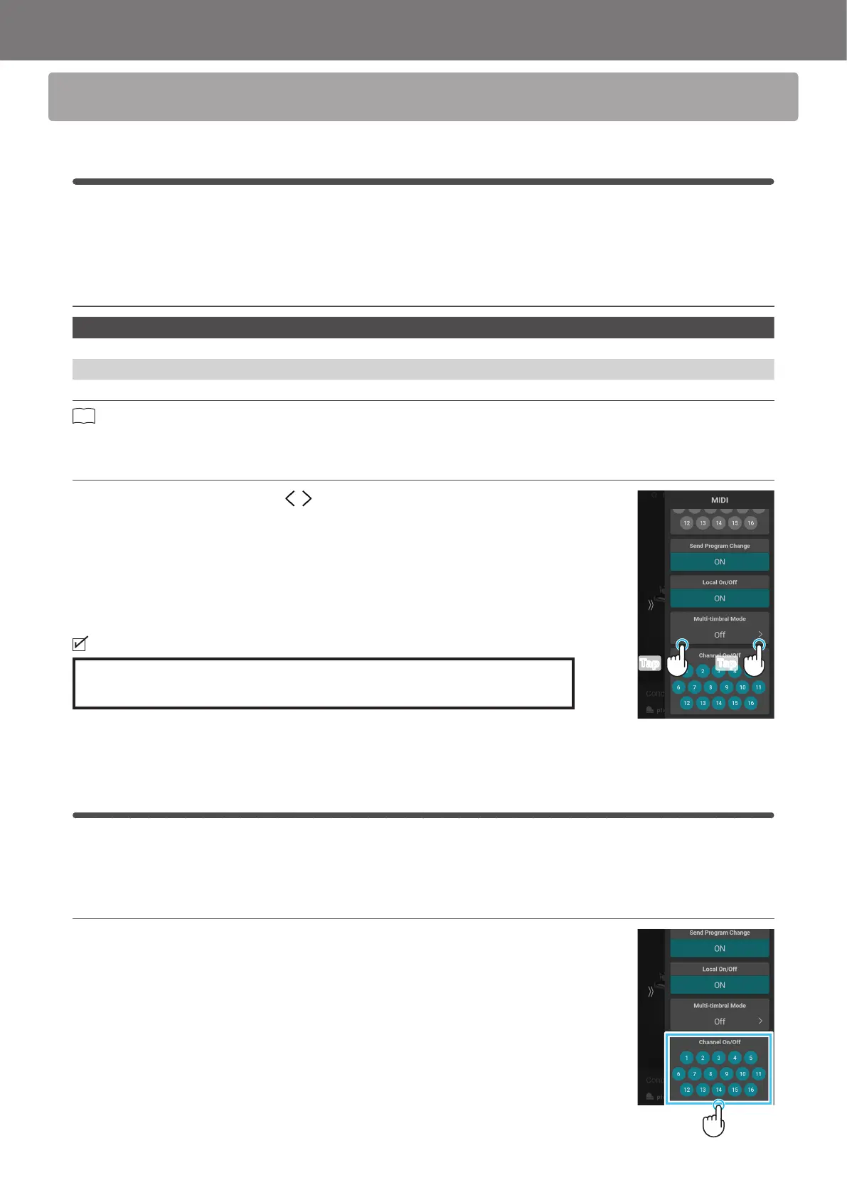 In the Channel On/O area, tap the number buttons to turn the MIDI channel on/o.